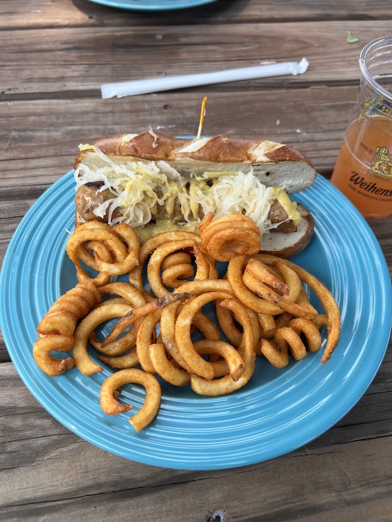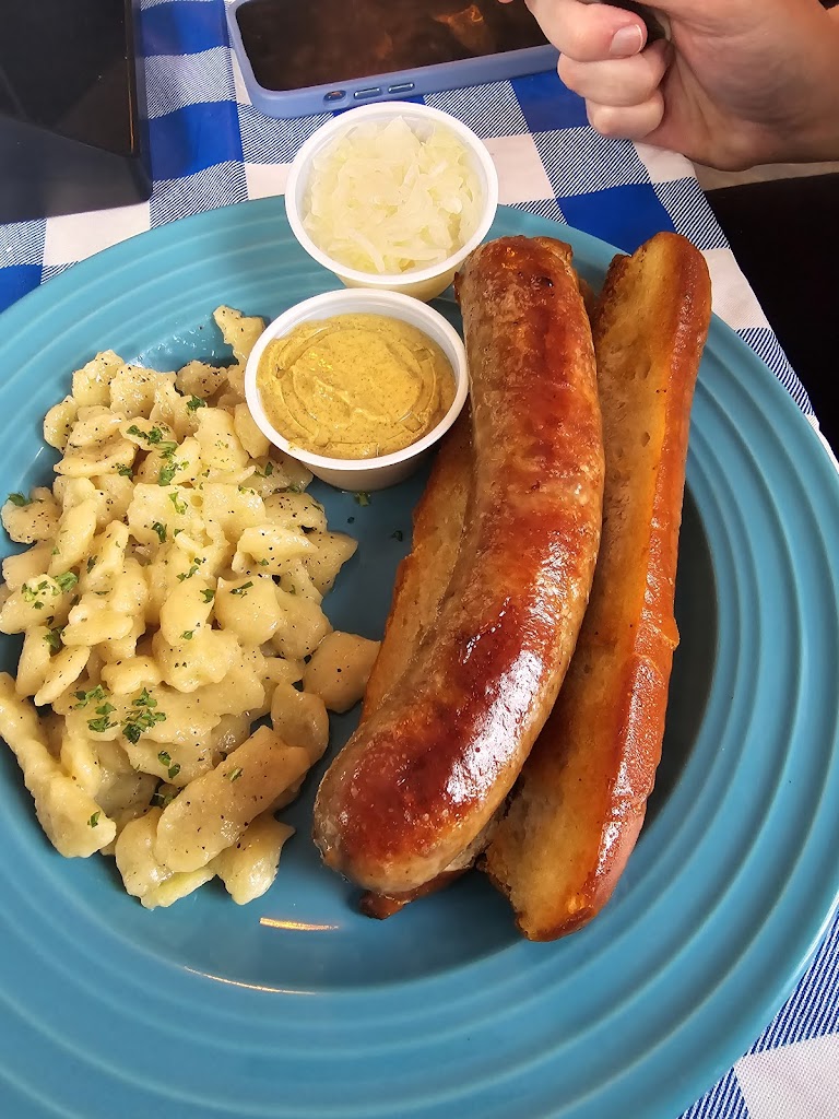 The best Bavarian pretzel I have ever had at a restaurant. The chicken snitzle was excellent, I just wish there was more. It was pan-fried perfectly. The spatzle was nice, again wish there was more. The bratwurst were flavorful and the pretzel buns complimented them nicely. Would come here every time we stay at the Dells from now on!