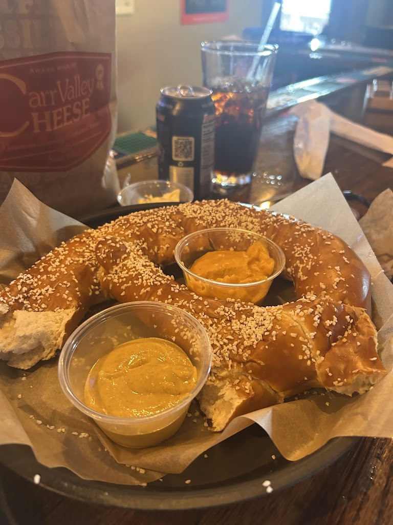 Sorry to say we had a pretty poor experience. There was a large group there already and only one cook (on Saturday night!). It took over an hour to even get our pretzel, which was not hot. (the cheese dip was hot and delicious.)