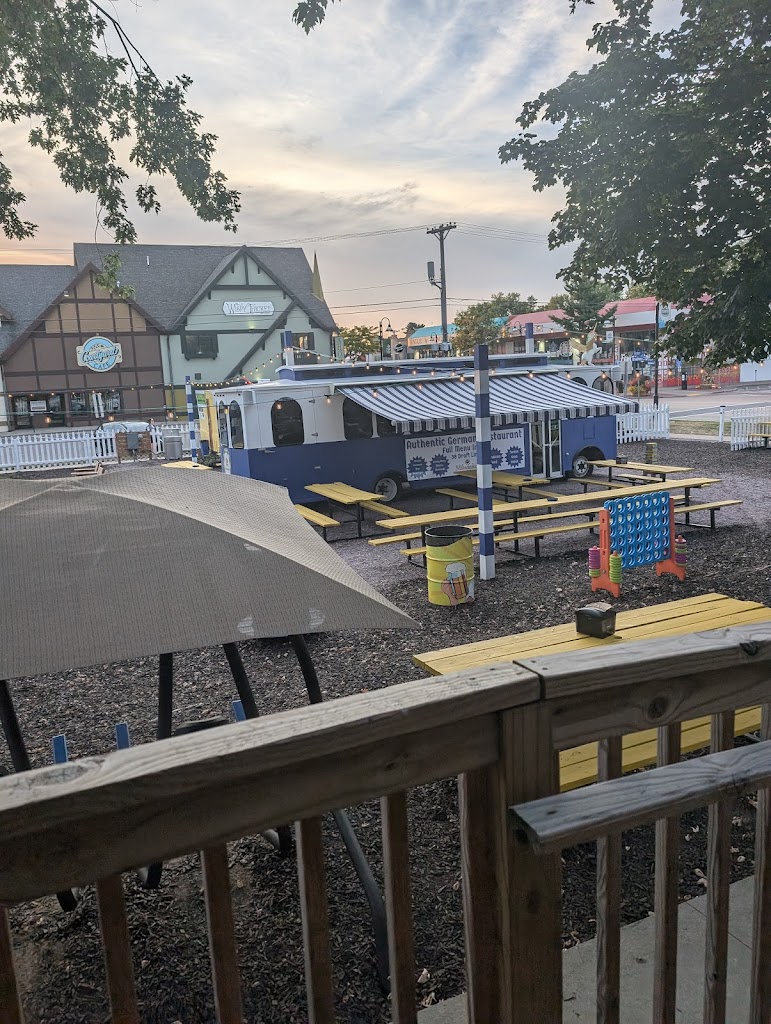 Great selection of import beers. I had 2 different oktoberfest beers from Germany. My wife liked the strawberry cider. My daughter loved the spaetzle. I had the brat with potato pancakes which were flavorful and cooked well. The biergarten vibe was really neat and right on the main strip. We will definitely be back the next time we visit the dells!