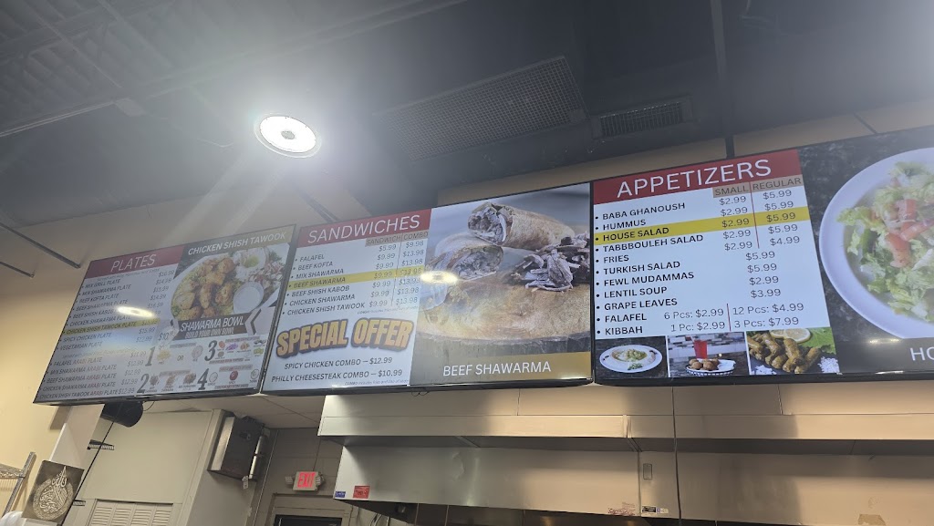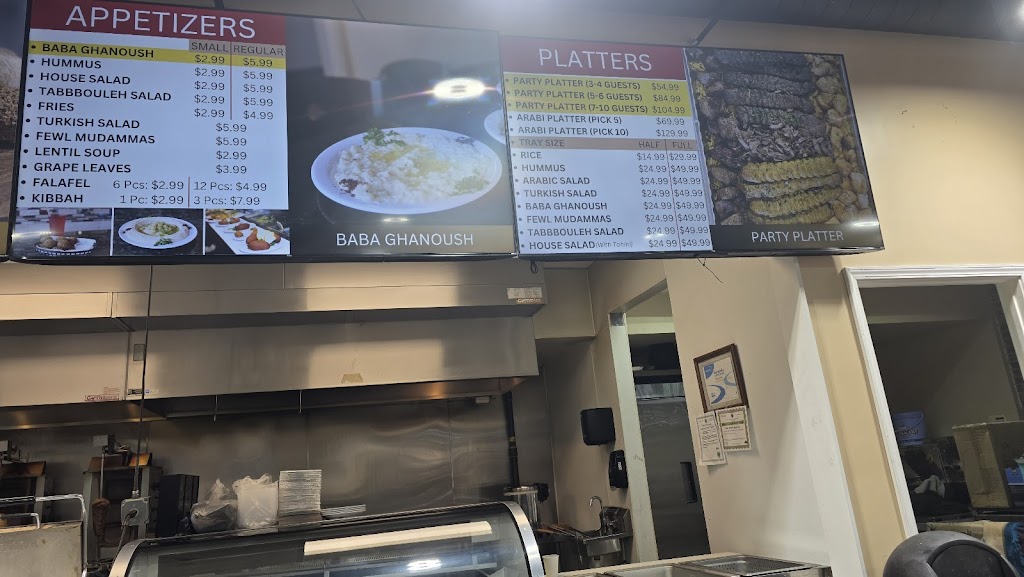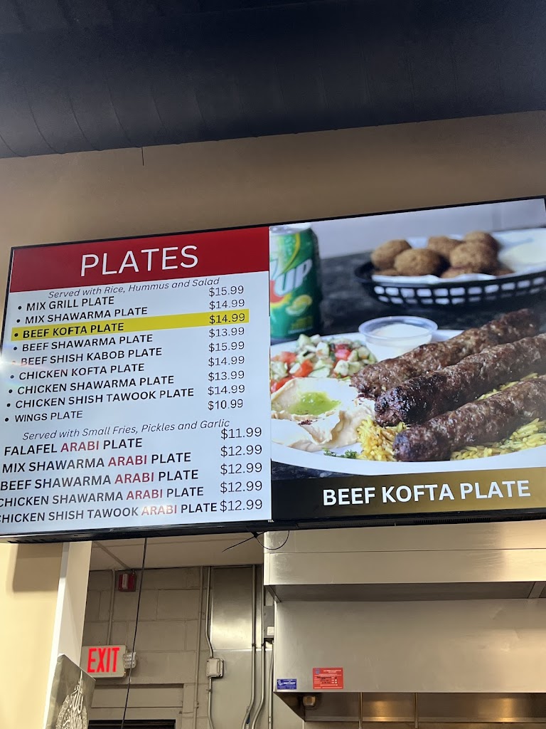 Authentic shawarma beef or chicken or mix. New shawarma bowls added to the menu! Lots of fresh toppings arab salad. Shish Kabobs. Fries and rice available with homemade hummus. The taste is authentic and never let's you down. Great selection of vegetarian options like falafel and lentil soup. The grocery store has everything you need. Under new management. New and improved facility. Great friendly staff. Reasonable prices.
