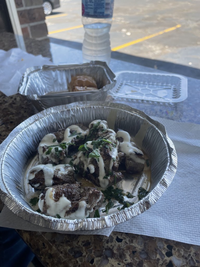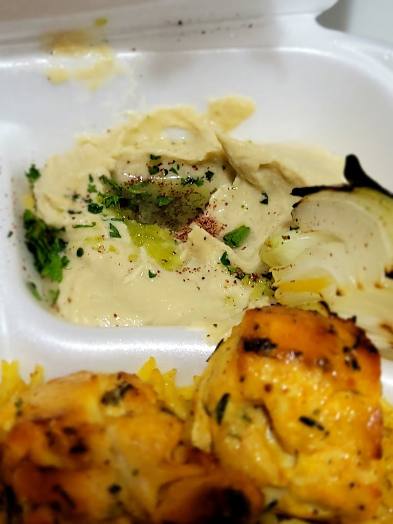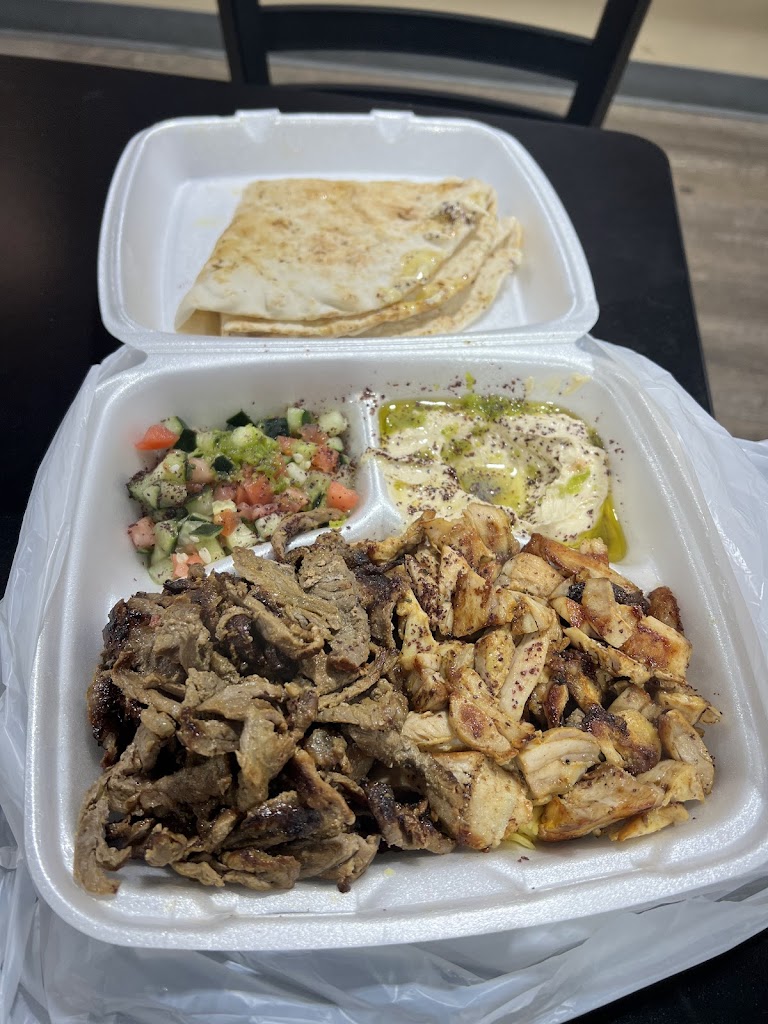 Great food at great price. I got beef/lamb and chicken Shwarma over hummus, each $7-8. Great price, and you get a lot of food. Shwarma is made in the house, and it is delicious. You a container with hummus topped with plenty of meat, sprinkled with fresh greens and roasted almonds.