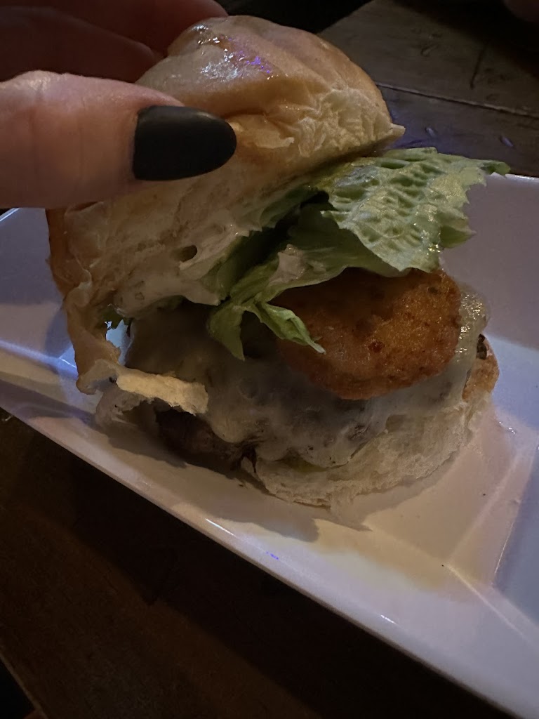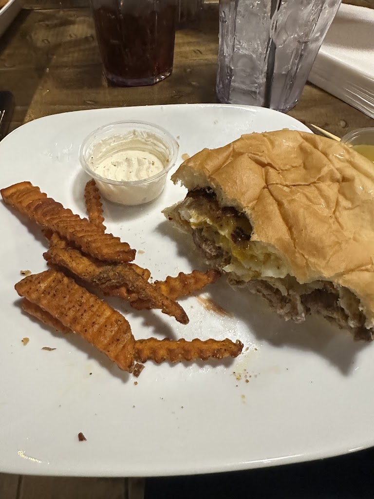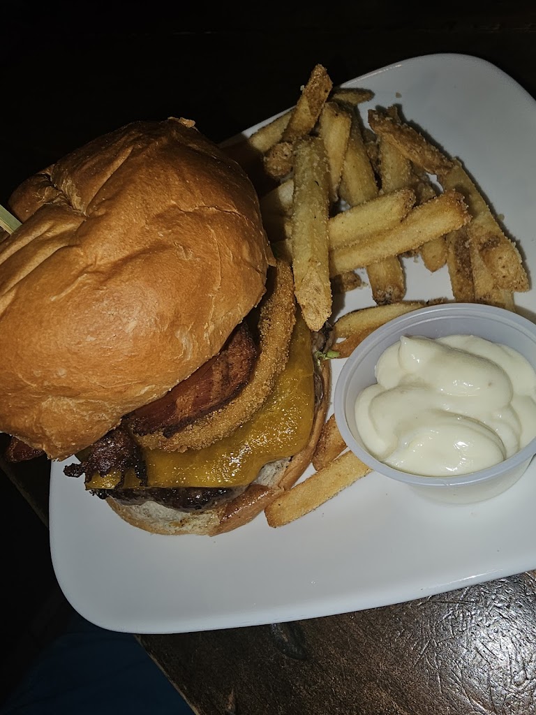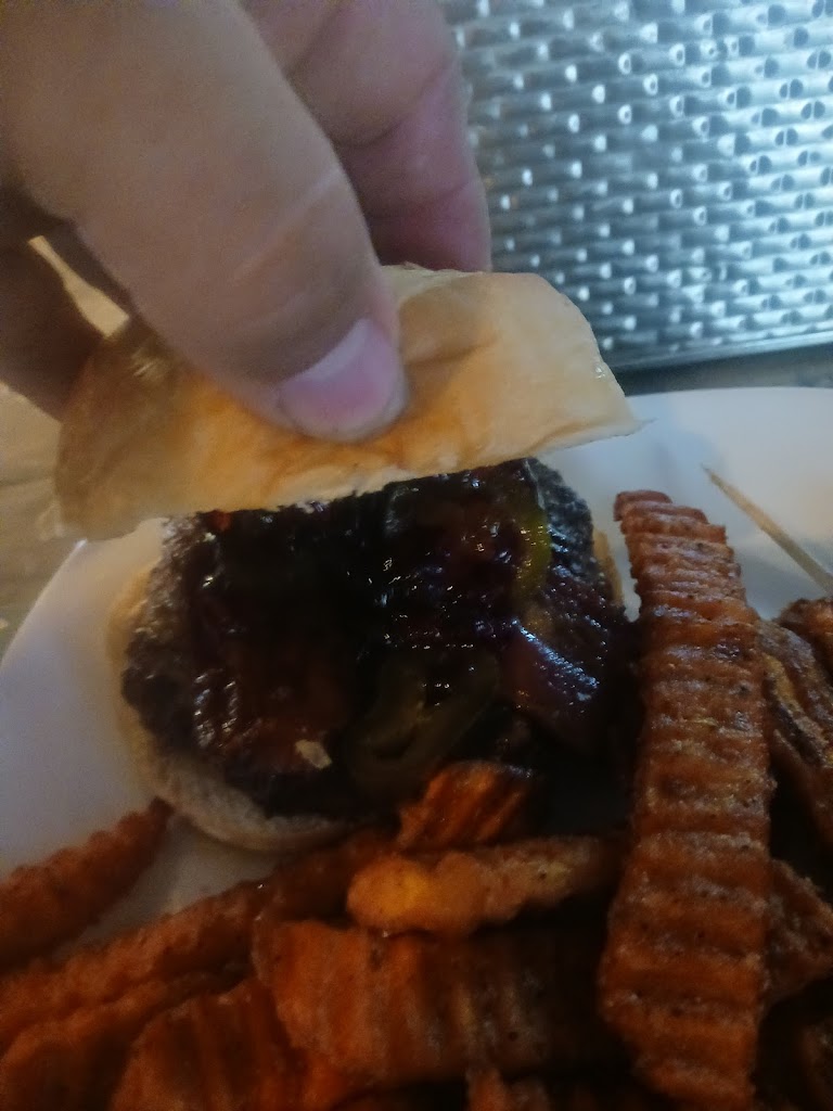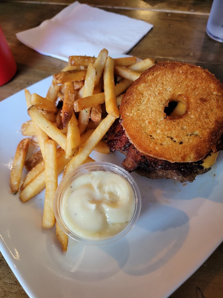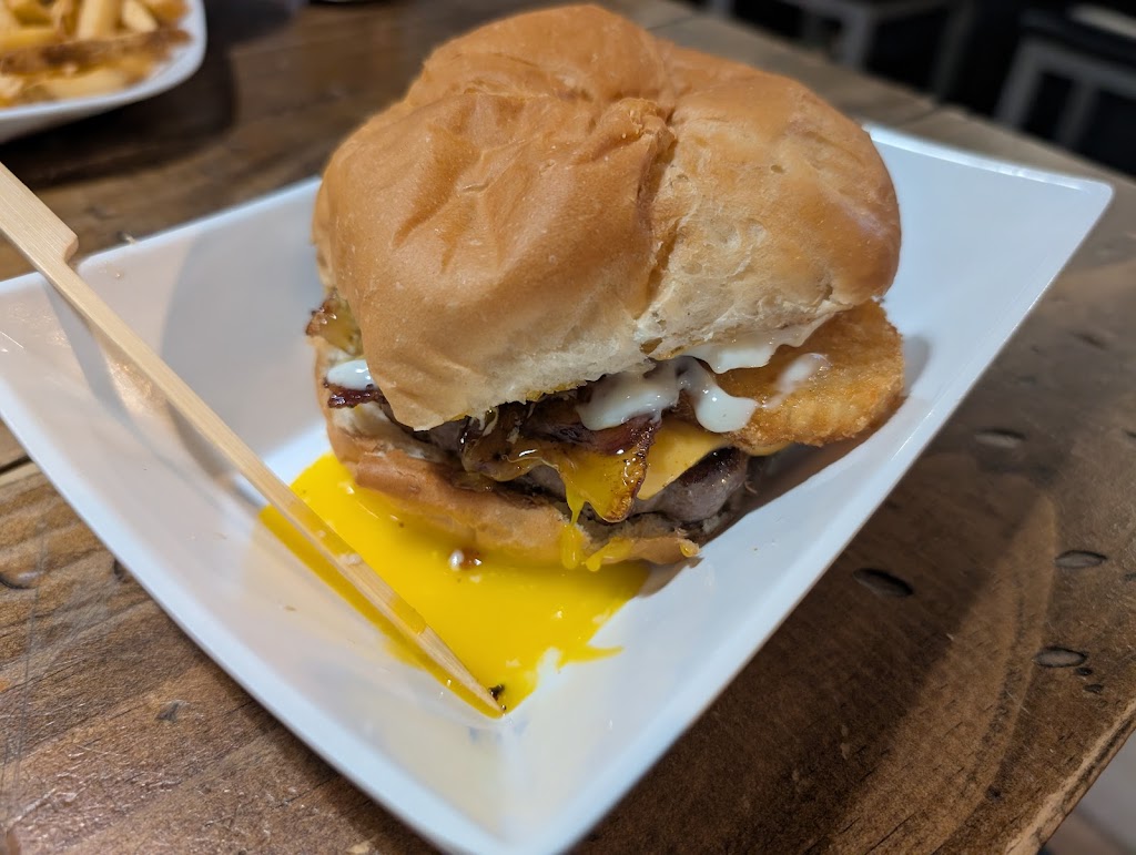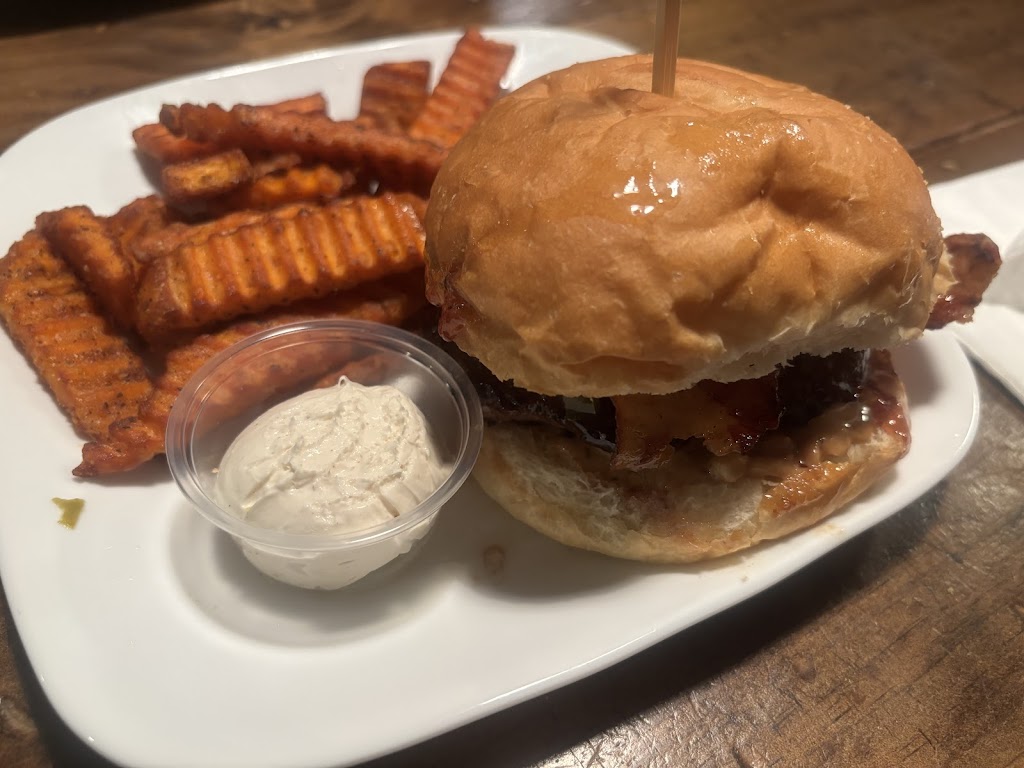 Hangover Burger was amazing! Recommend the sweet potato fries as well!