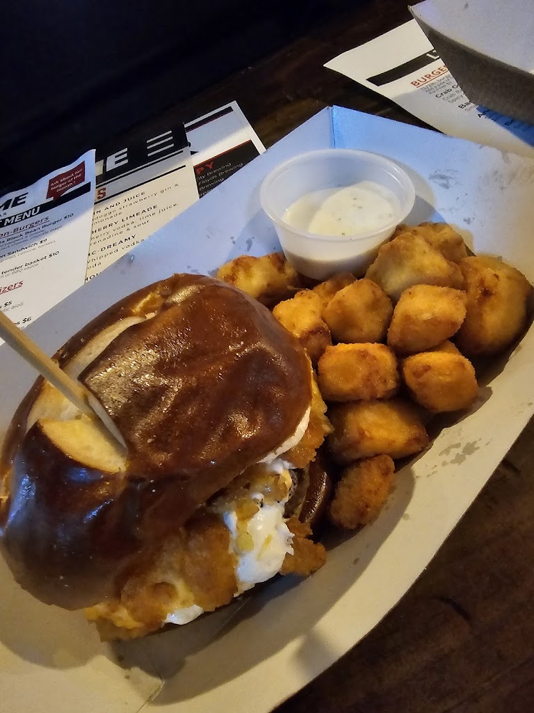 I came here with my partner and 1-year-old at 6 on a Saturday night and miraculously got a table right when we walked in! Service was quick so nobody was waiting long for tables while we were there. I had a few beers, cheese curds, and we both got the Big Dill burgers. Everything was so tasty and cooked to perfection. The curds came out fast and were super melty. The burgers were juicy but without soaking the buns and the fries were crispy and hot. My baby loved trying everything and the servers were fantastic. I’m not sure why I waited so long to come here.