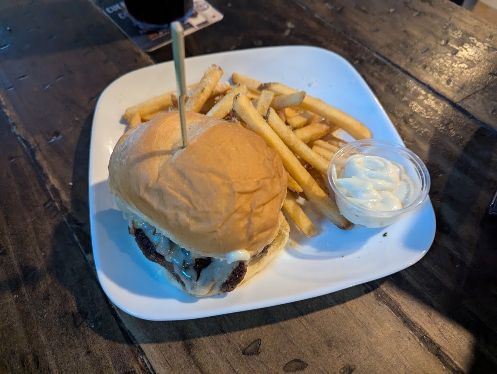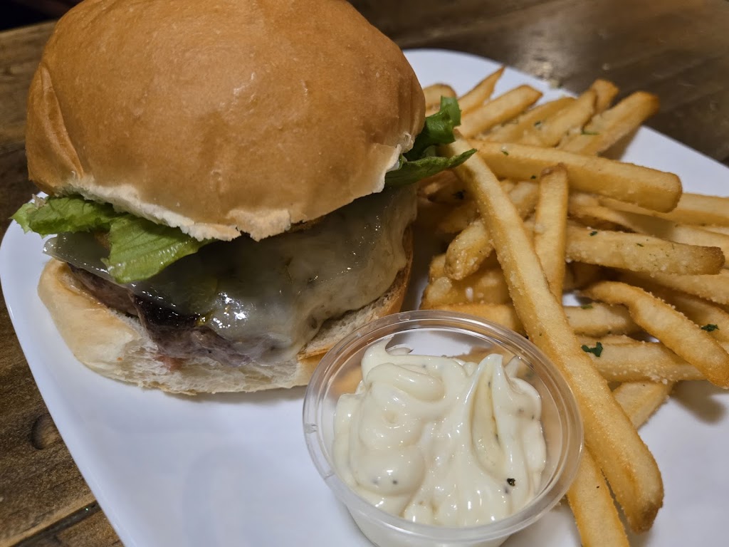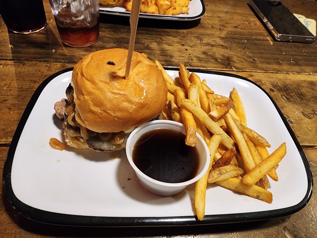 So good! Mushroom and Swiss burger was great, sweet potato fries great, and the cheese was great lol! We sat at the bar due to tables being full. Our server was attentive and friendly. I’d recommend it for sure!