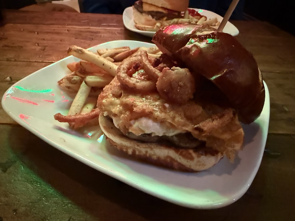 Relaxed bar atmosphere with great burgers. My favorite is the French Onion Burger, but it's only served as an occasional monthly special. Close runner-up is the crabgoon burger, yum!