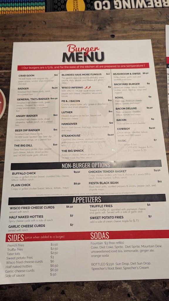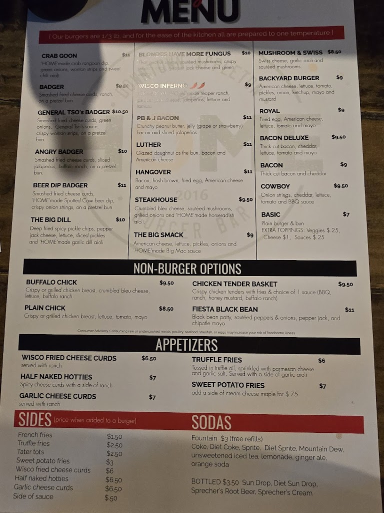 We blew in from out of town. Stopped here for a burger. We got delicious food and the Angry Badger burger was amazing! Super friendly service and great prices!! Thanks