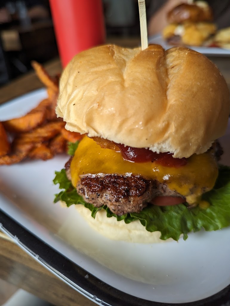 Really enjoyed eating here! Great burgers and amazing sweet potato fries. The service was awesome and friendly. I am so impressed by the menu choices and range of clever and unique burger choices. I can’t wait to try a new one next time!