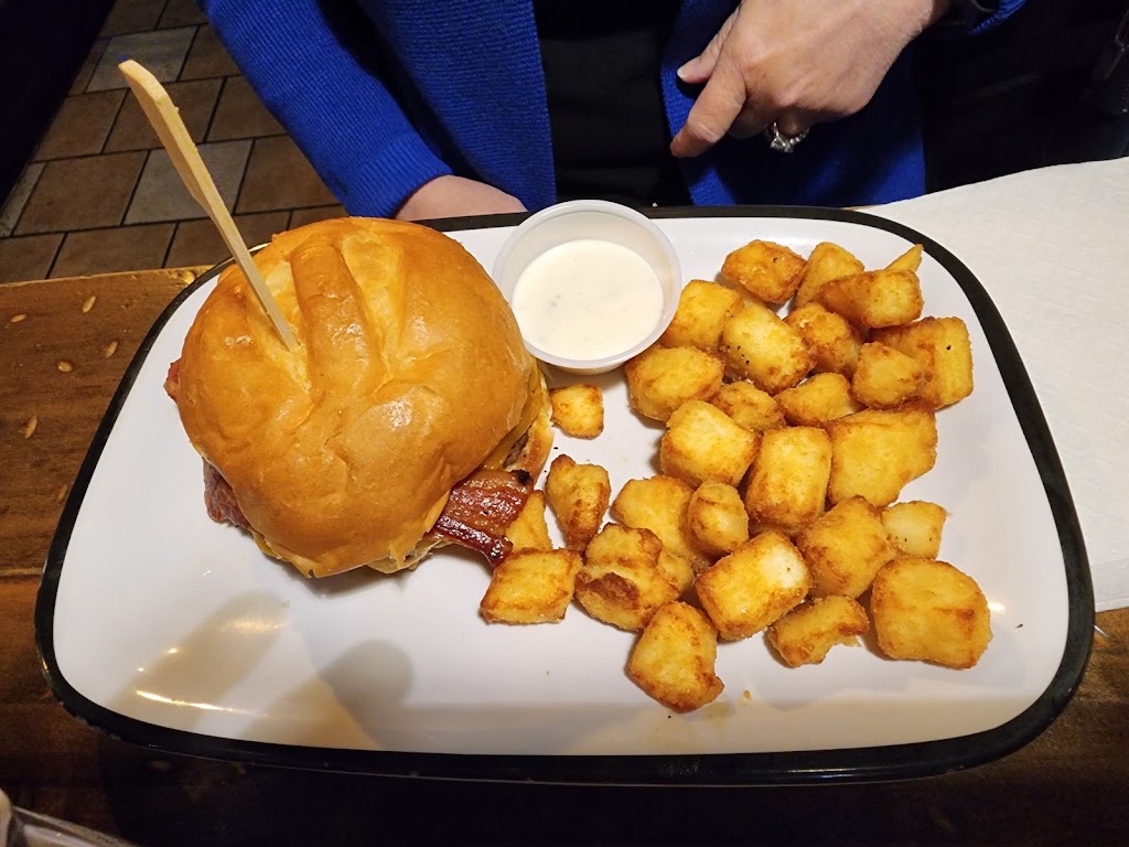 Stopped in after playing at the building for kids all day. There is only one table that isnt bar height but we had our stroller so it worked out. Ordered the big dill burger and was delicious. Also enjoyed the cheese curds and sweet potato fries!