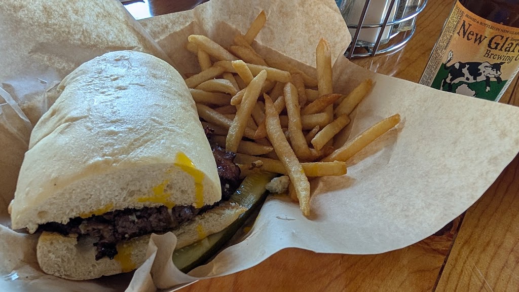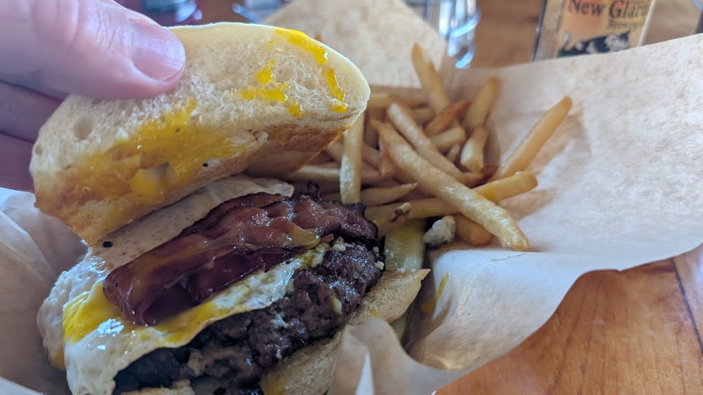 Bacon cheeseburger was excellent. Homemade bread baked daily. Fries were great. Good service from the bartender as well. Nice place.