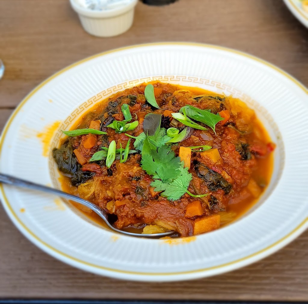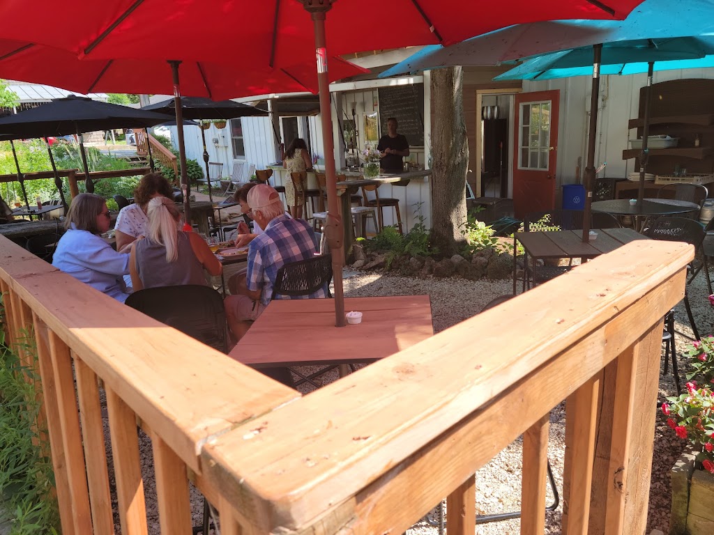 The food was fresh and flavorful. There is a true chef in the kitchen and it shows. We had soup, salad, sandwhich w/multiple very complimentary meats, which sounds odd but not if you eat that awesome sandwhich, and a falafel sandwhich. I don't like much falafel and from what i tried it was very good. The atmosphere and service was also excellent. Had i known of this place beforehand I would have carved out more time to just be there, the patio was peaceful and beautiful. Flowers and herbs abound around and there is a m'f'n waterwheel! Super charming.