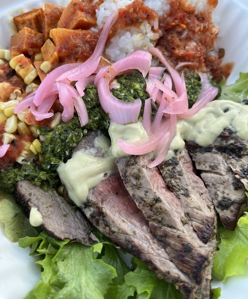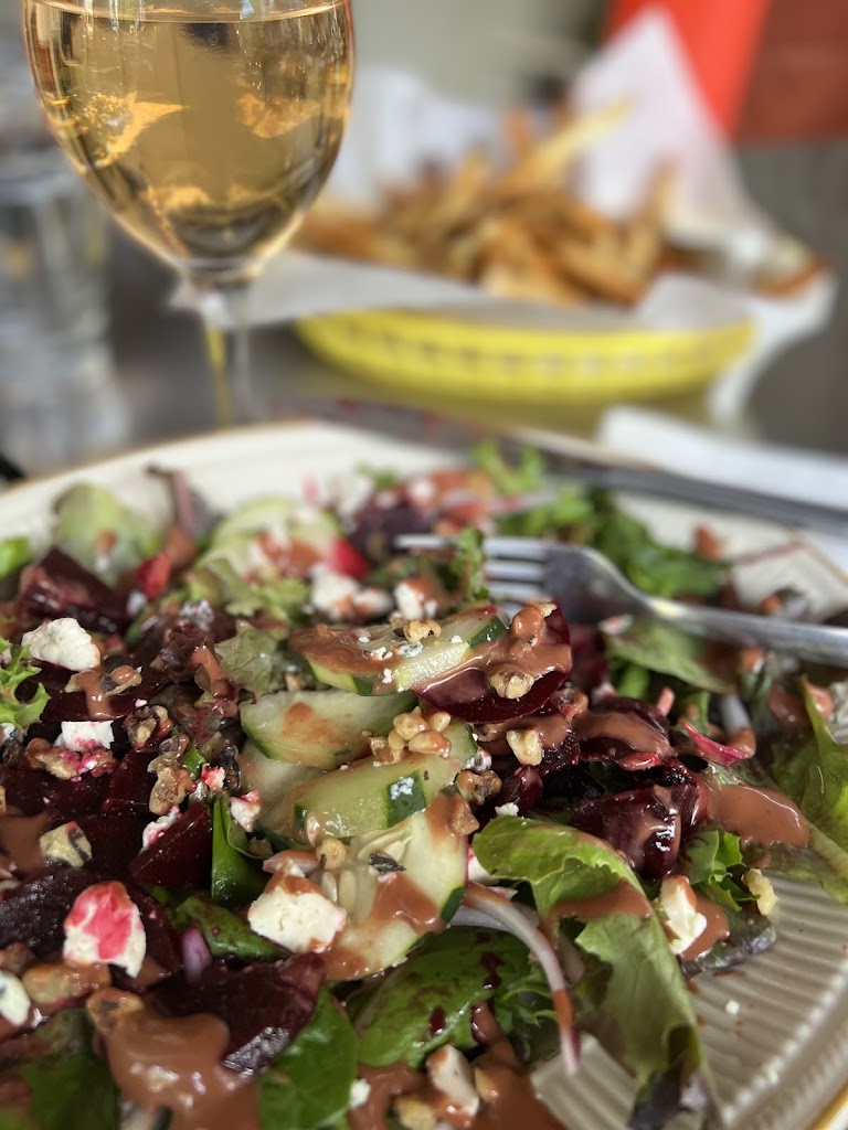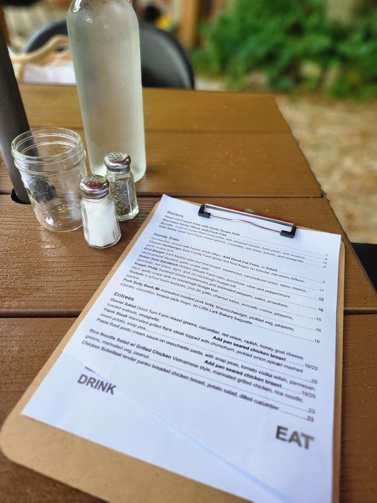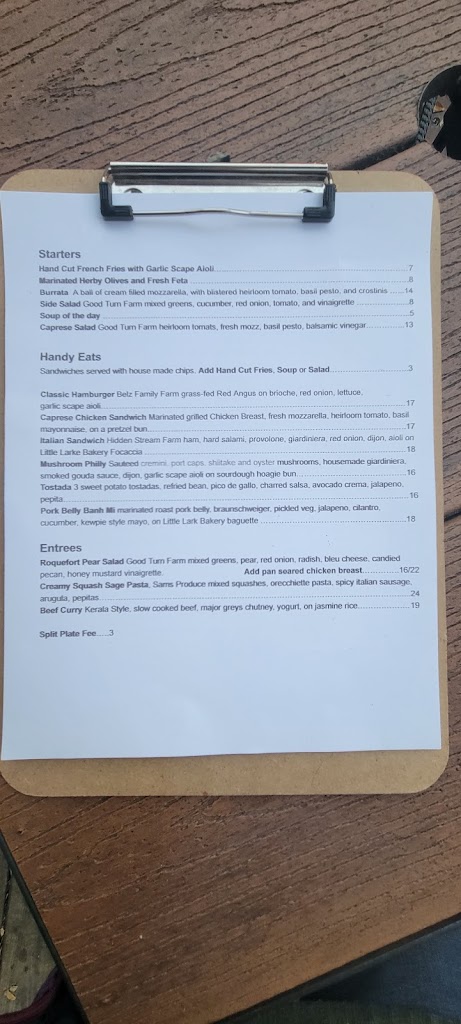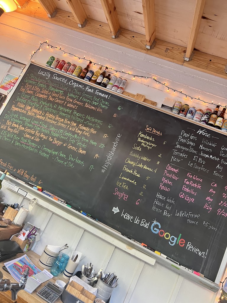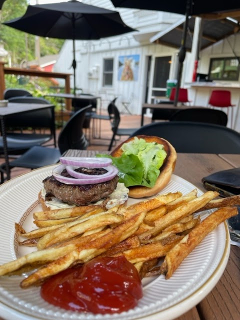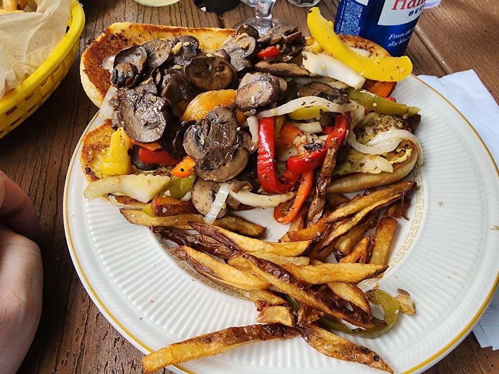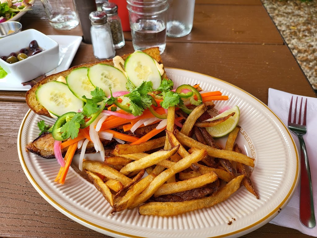 We first visited in fall of 2021, and enjoyed a delicious organic hamburger with hand cut fries. Went back today (June 2022). I had the Veggie Philly and my friend, the Bahn MI. Best veggie sandwich I've ever had (and I'm old!); my friend gave 5 stars to the Bahn MI as well. Served with a side salad (yummy strawberry-rhubarb dressing).