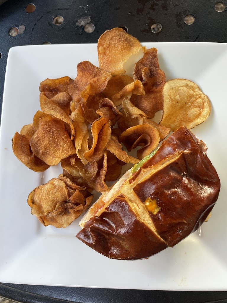 Driven through Stockholm many times but never stopped. We decided on Hop Dish and Vine for lunch and we're thrilled with the meal. I had the Porchetta sandwich and Mrs. Erdelac had the Italian. The house chips are fantastic, a mild salt and vinegar that is very well executed. The bloody mary compliment the lovely late June meal. Highly recommend.