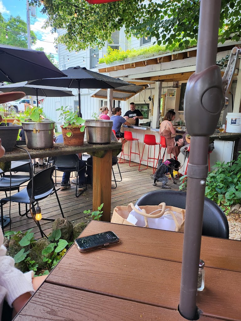 Beautiful, authentic-feeling outdoor patio. Comfy chairs. Wonderful, laid back service. The vegetarian Philly sandwich was incredible! Well curated beer selection. Thanks for creating this welcoming space & for sourcing local ingredients!