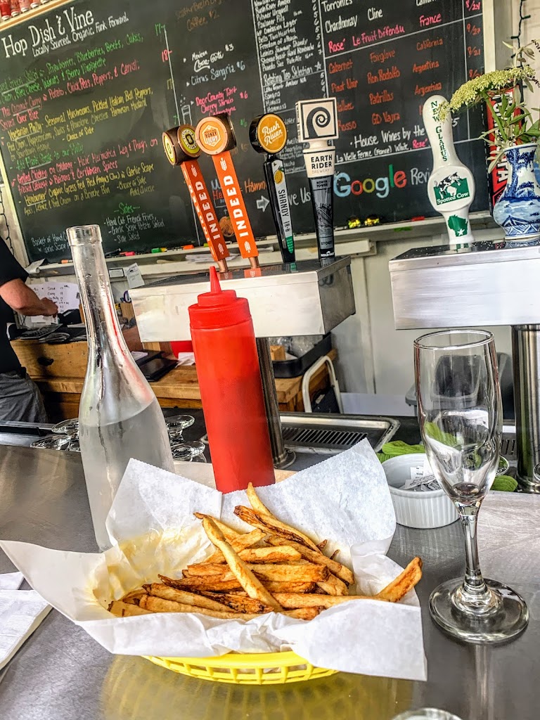 Wonderful background music. Fries are the best I’ve had. We sat at the bar for a drink and app before exploring more of the charming town.