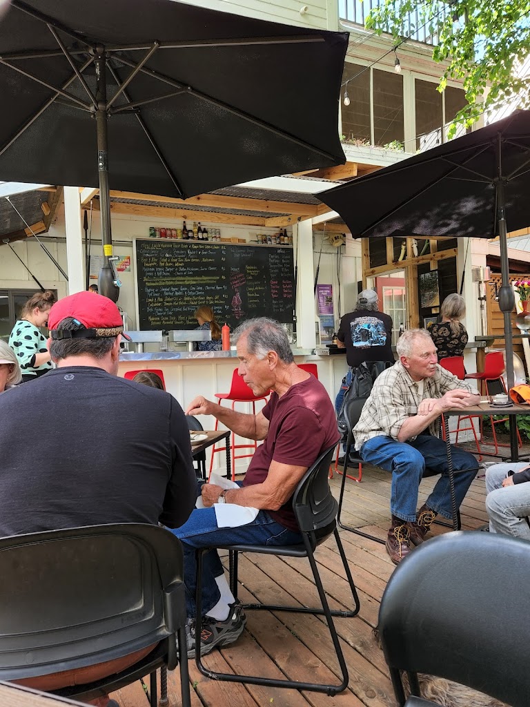 I went to this amazing restaurant yesterday. It is a very quaint, rustic surprise. The staff, food and the customers were all very friendly. There were even a few four-legged visitors stopping in to pet. The weather was beautiful so having the open air dining made it even better. There are a few tables indoors.