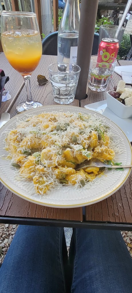 Love the atmosphere sitting outside at this adorable Cafe. Good food, glass of wine, and a dog who visits the customers.