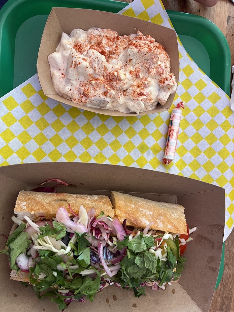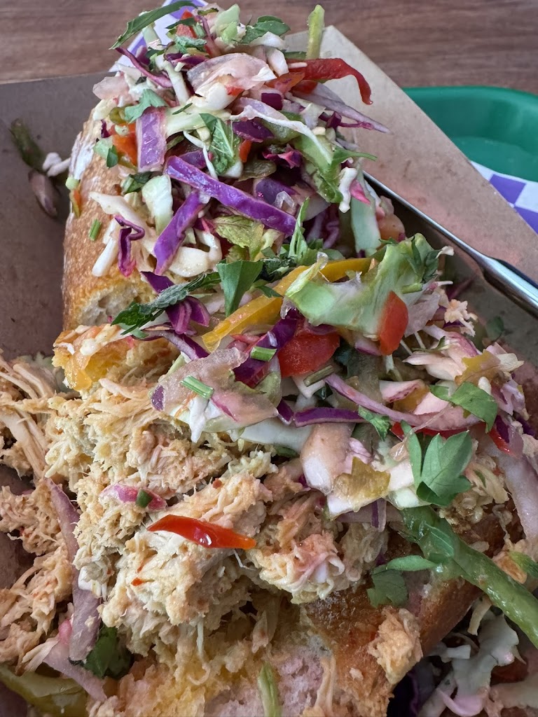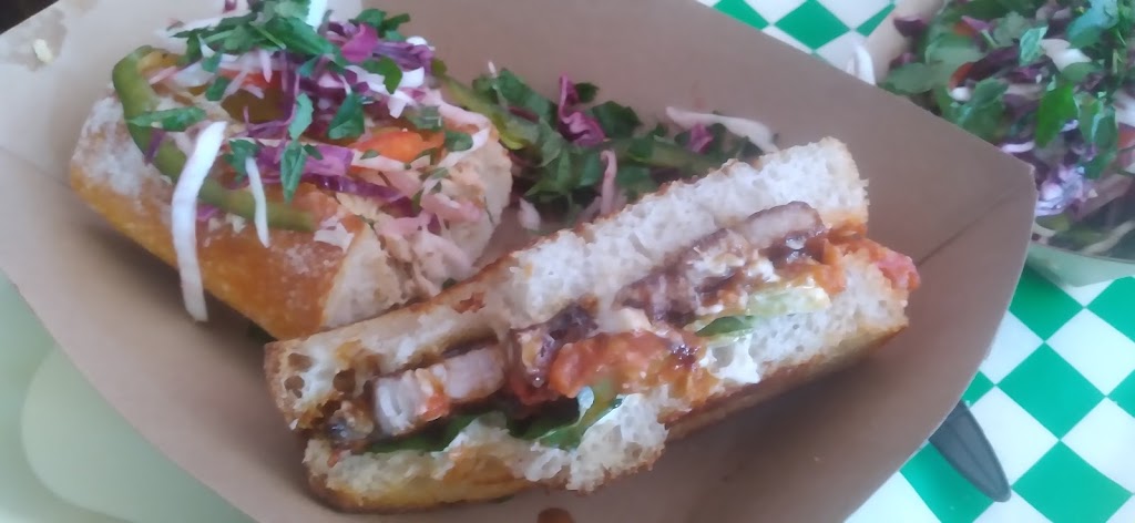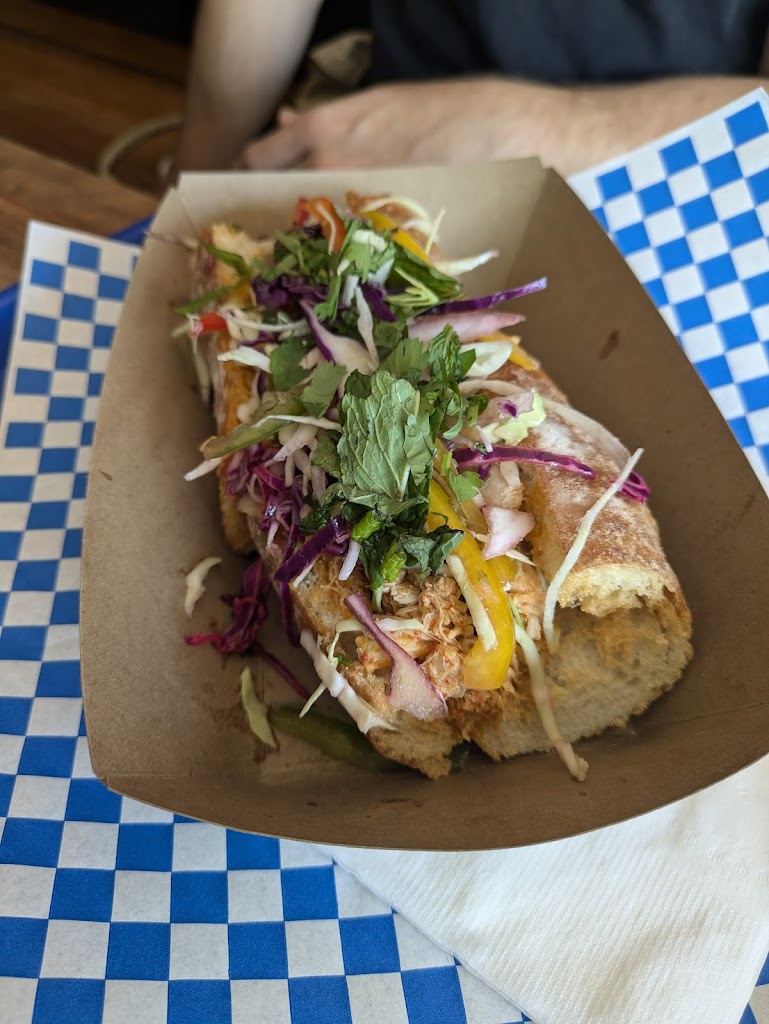 Went here during a visit based on the reviews. I ordered the meatball sub, my husband got the vegan banh mi, and the chili. This chili was missing several ingredients and had a flat, weak, slightly sweet flavor. The bread for the sub was stale, the sauce tasted like slightly doctored tomato paste with no nuance, and the fresh mozzarella added no flavor. The meatballs, which also lacked nuance were okay. The banh mi was average. I am not sure why this place is popular because the food doesn’t recommend itself.