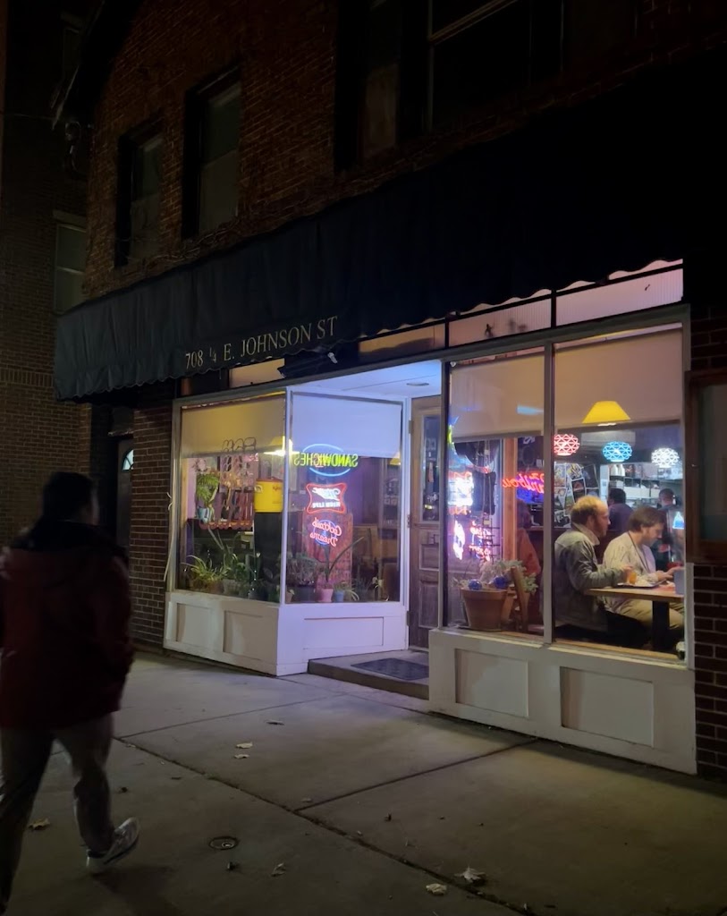 Super Madison kind of place. Small and kitschy. Great sandwiches. And they were playing random animated movies. My meatball sub had fresh mozz and basil. Good stuff.