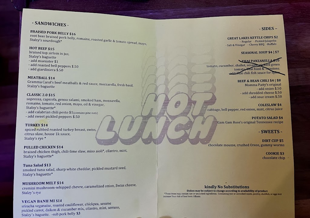 Step into Hot Lunch, where sandwiches are elevated to an art form, and nostalgia meets whimsy in a vibrant space. Nestled in the heart of Madison, Wisconsin, on East Johnson Street, Hot Lunch offers an exquisite culinary experience to the Tenney/Lapham and Johnson St neighborhoods since 2022. With a focus on mindfully sourced ingredients and house-made creations, each item is crafted to satisfy every craving, transforming a simple lunch or dinner into a delightful journey of flavors. Indulge in exceptional sandwiches, delectable sides, and craft beverages, as the team behind Hot Lunch invites you to rediscover the heartwarming comfort of childhood meals in a cheerful and nostalgic space.