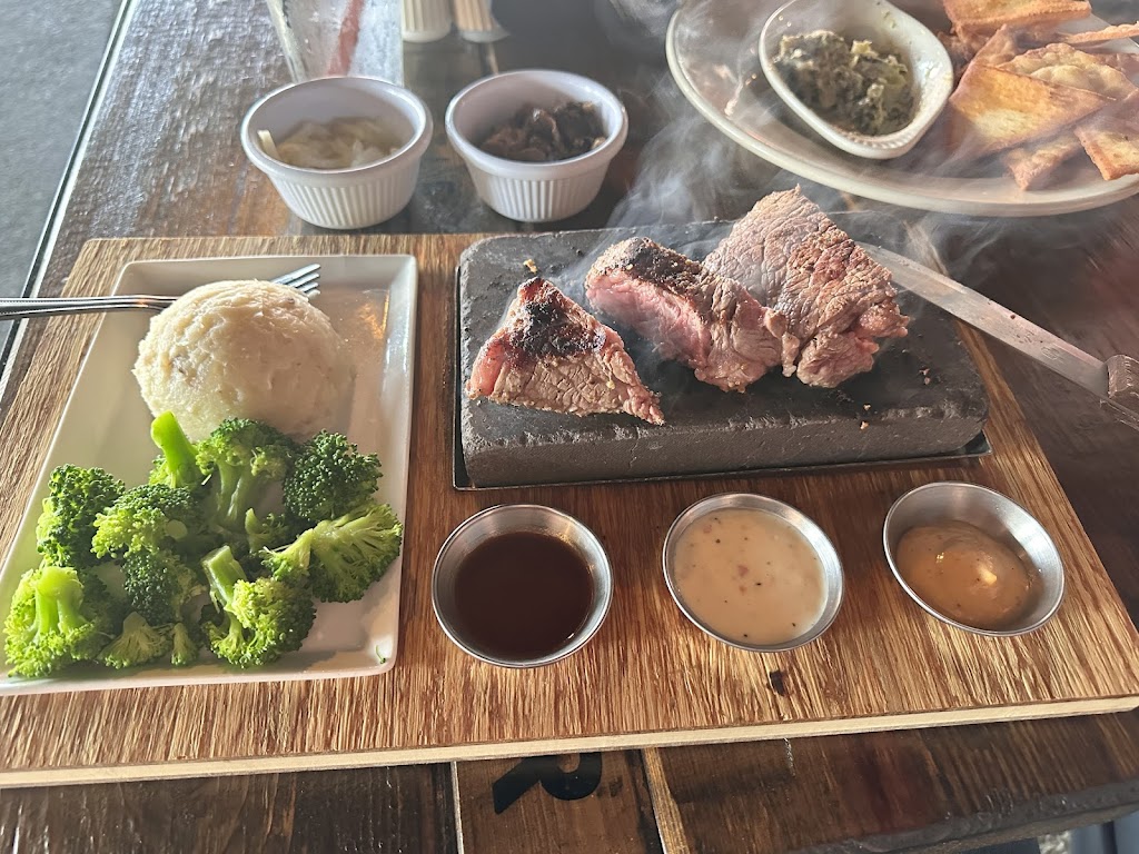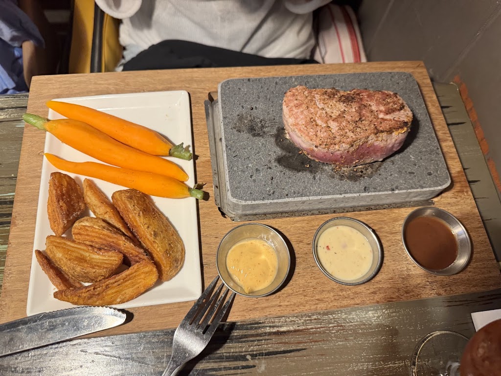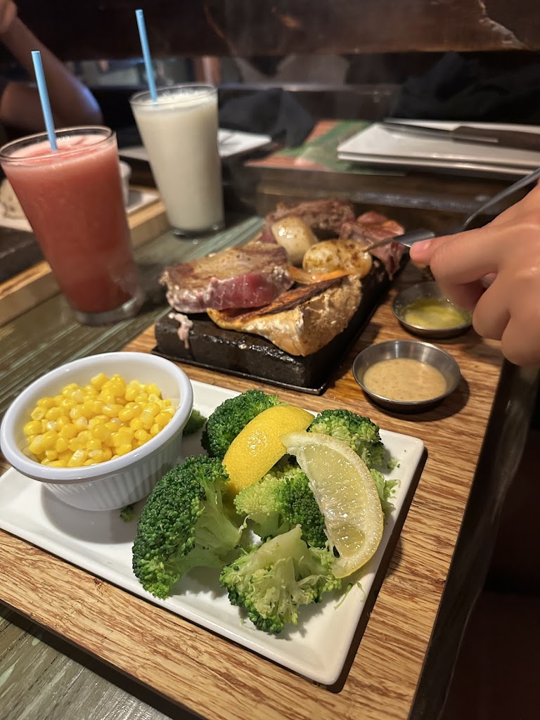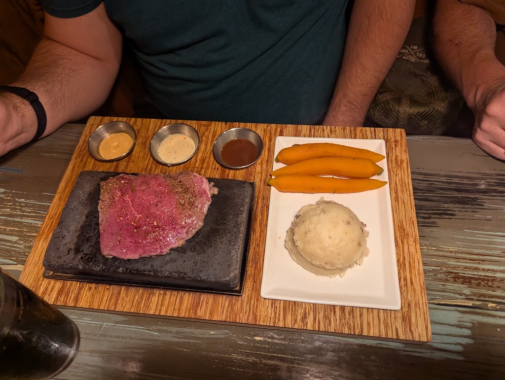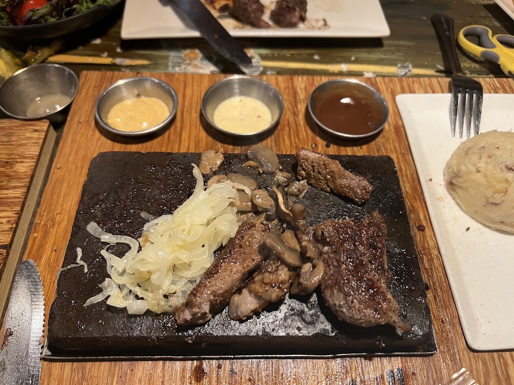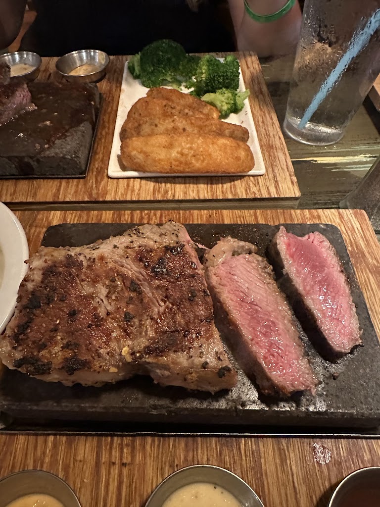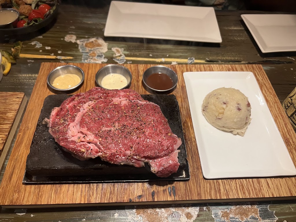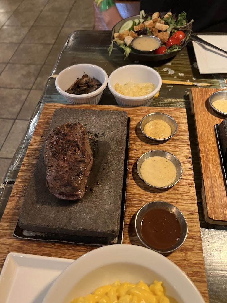 The steak on the rock tasted SOOOOO good, I really like how the place is designed and the food is overall really good. I definitely recommend going here.