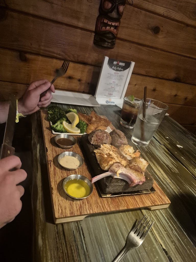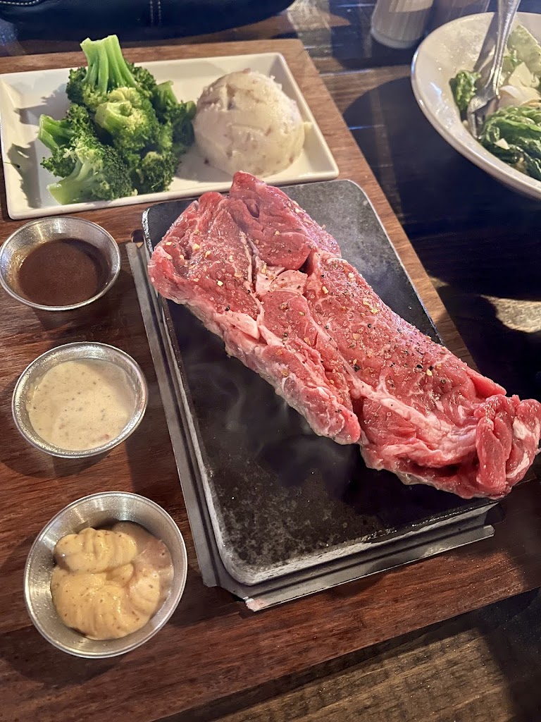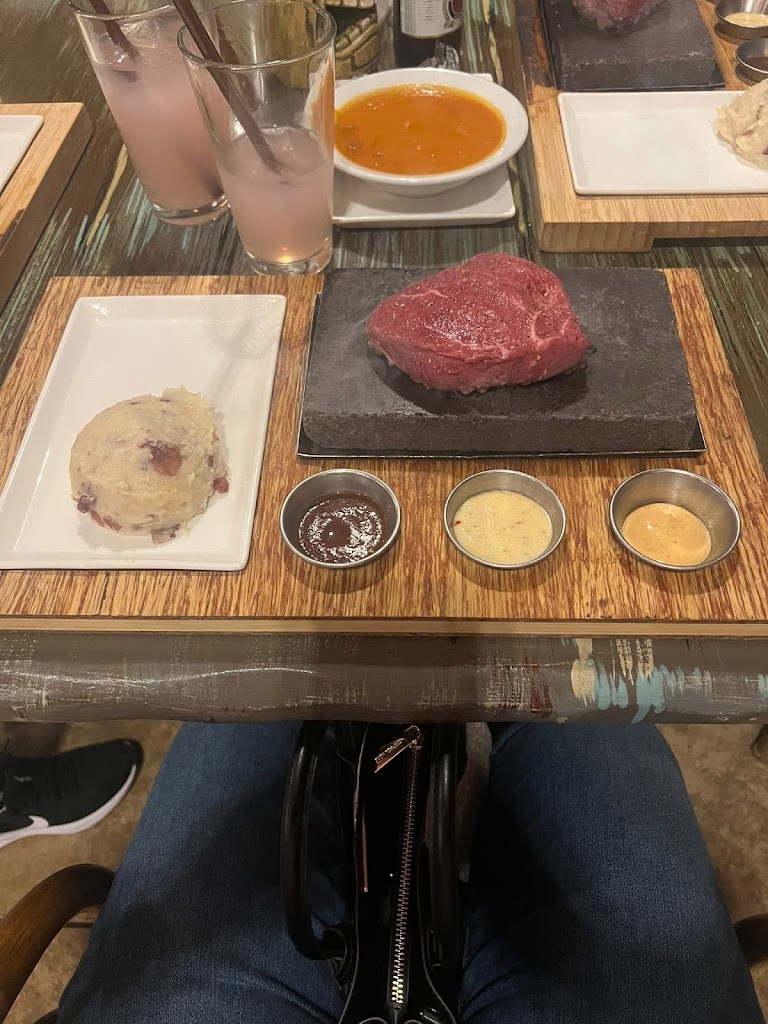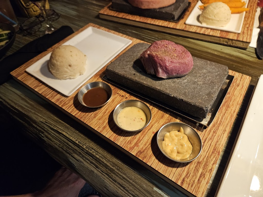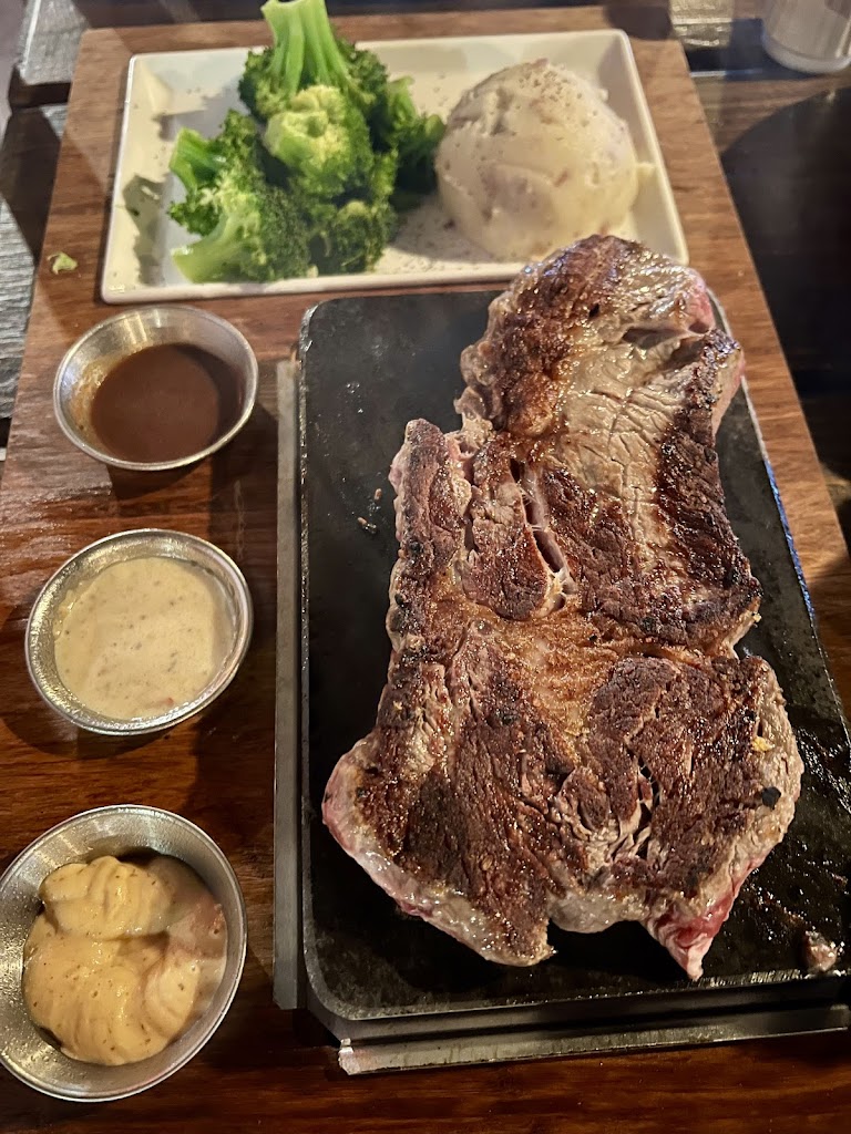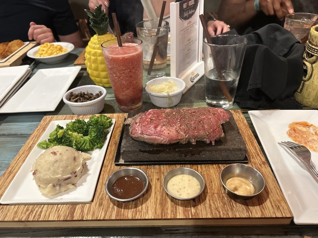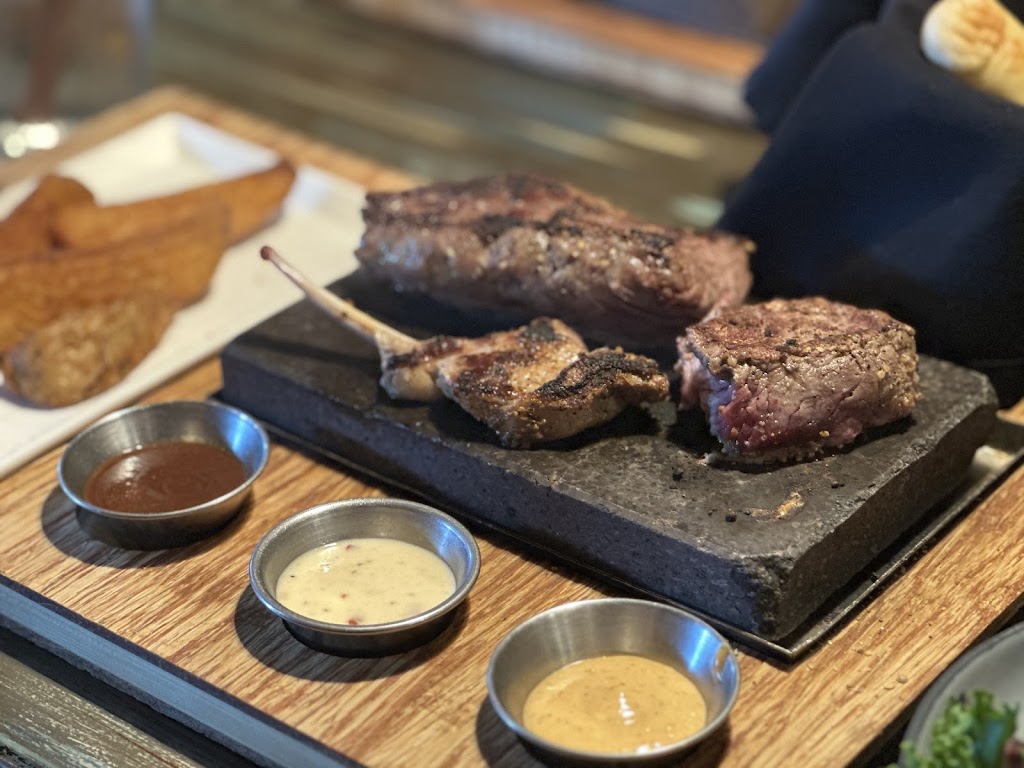The steak on the rock tasted SOOOOO good, I really like how the place is designed and the food is overall really good. I definitely recommend going here.