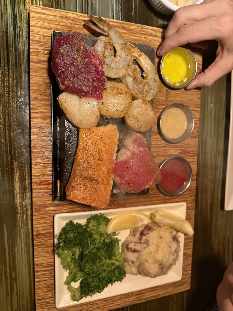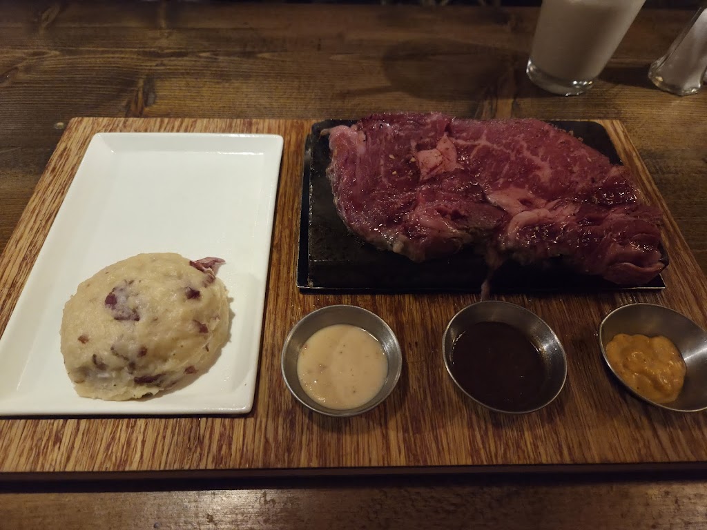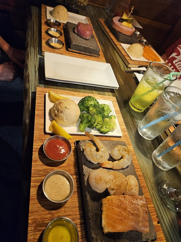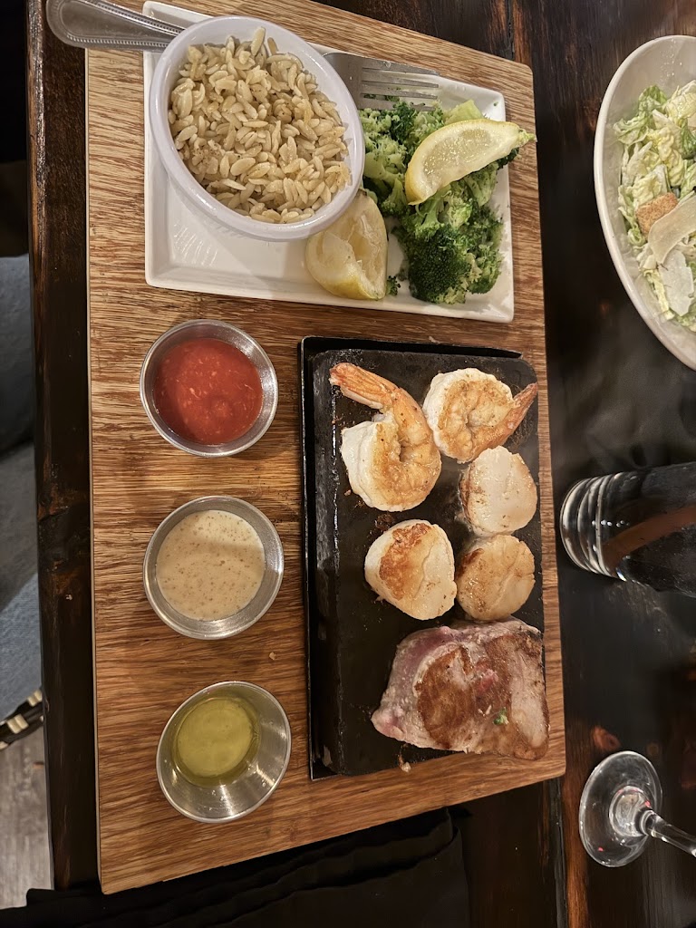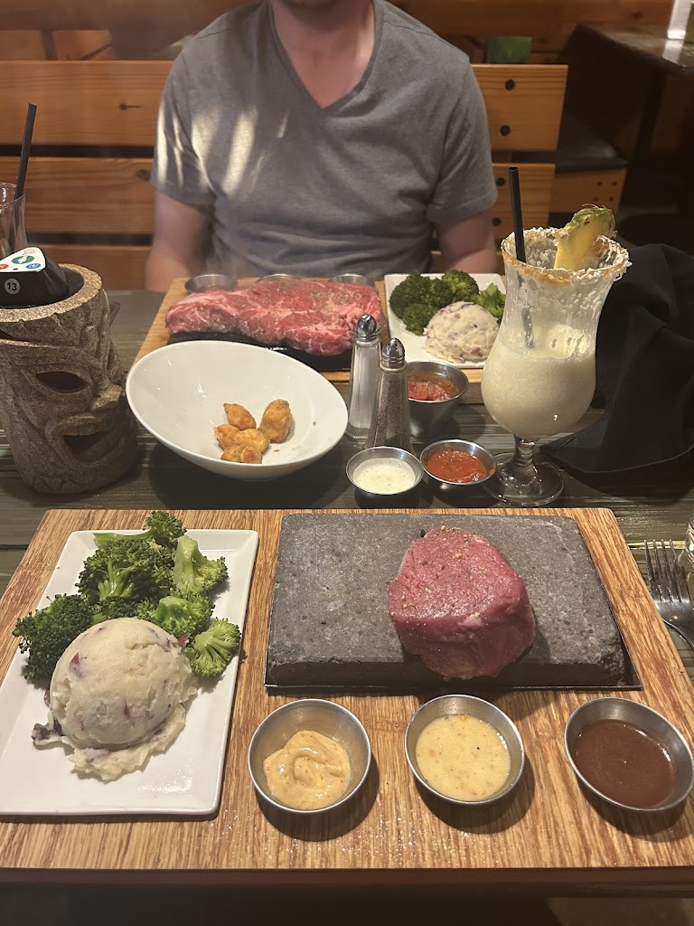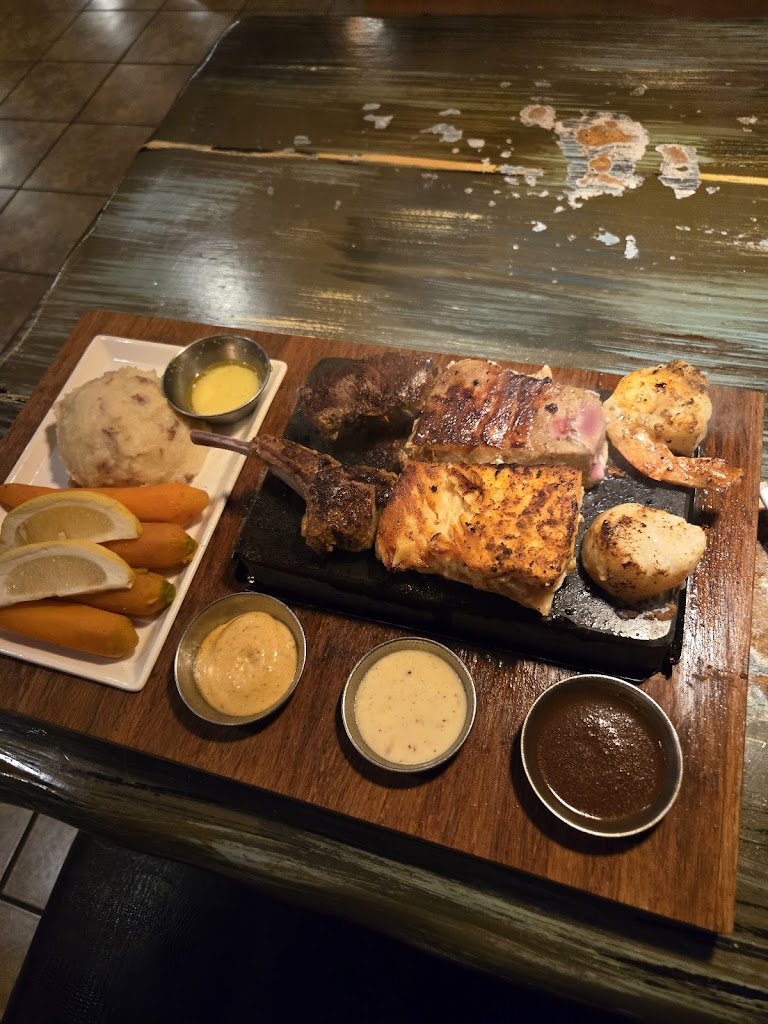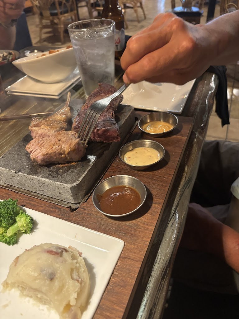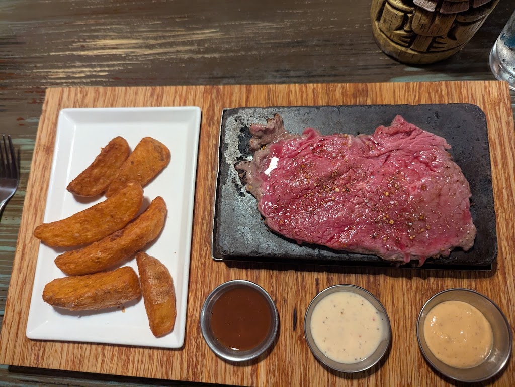 The steak on the rock tasted SOOOOO good, I really like how the place is designed and the food is overall really good. I definitely recommend going here.