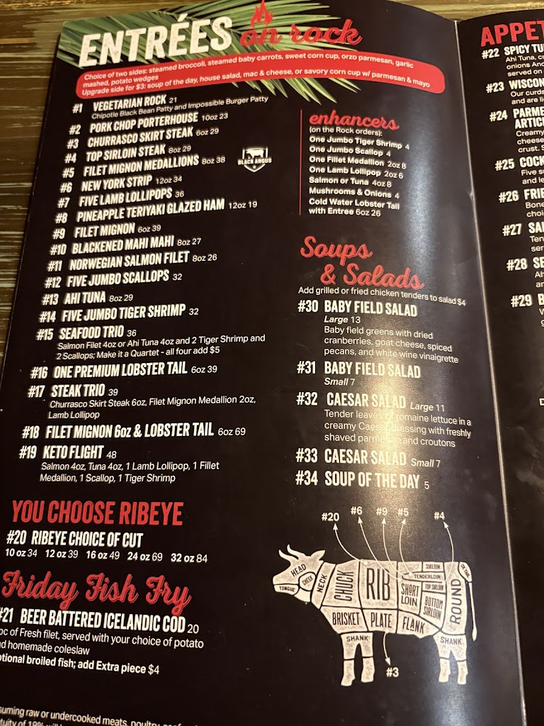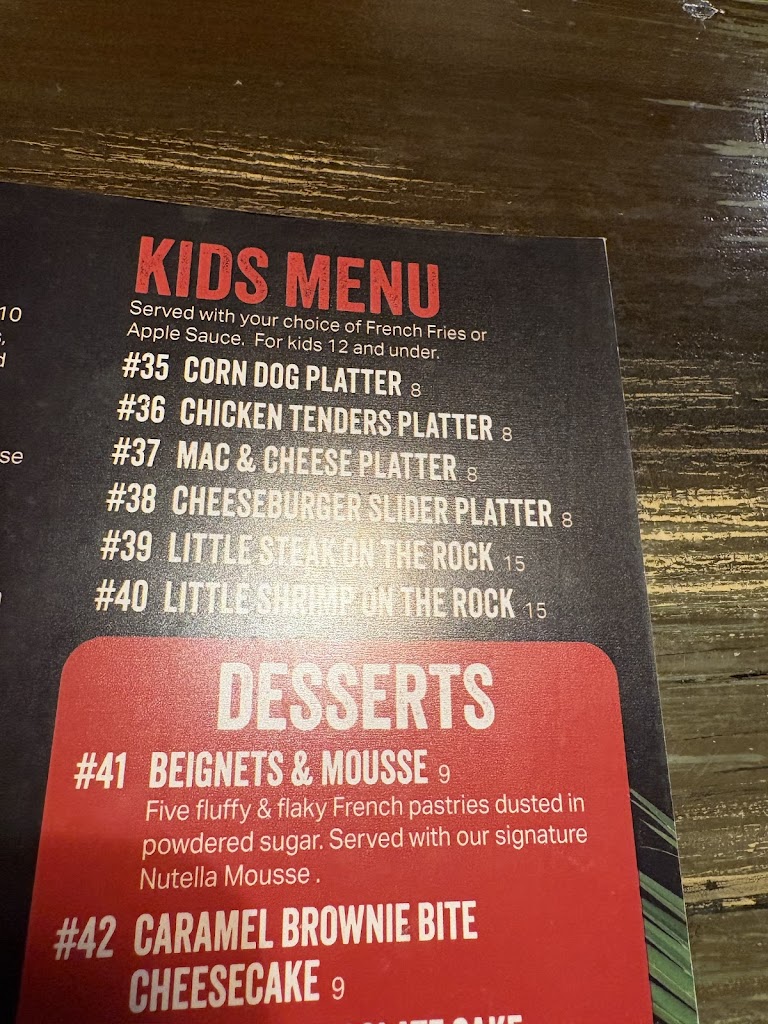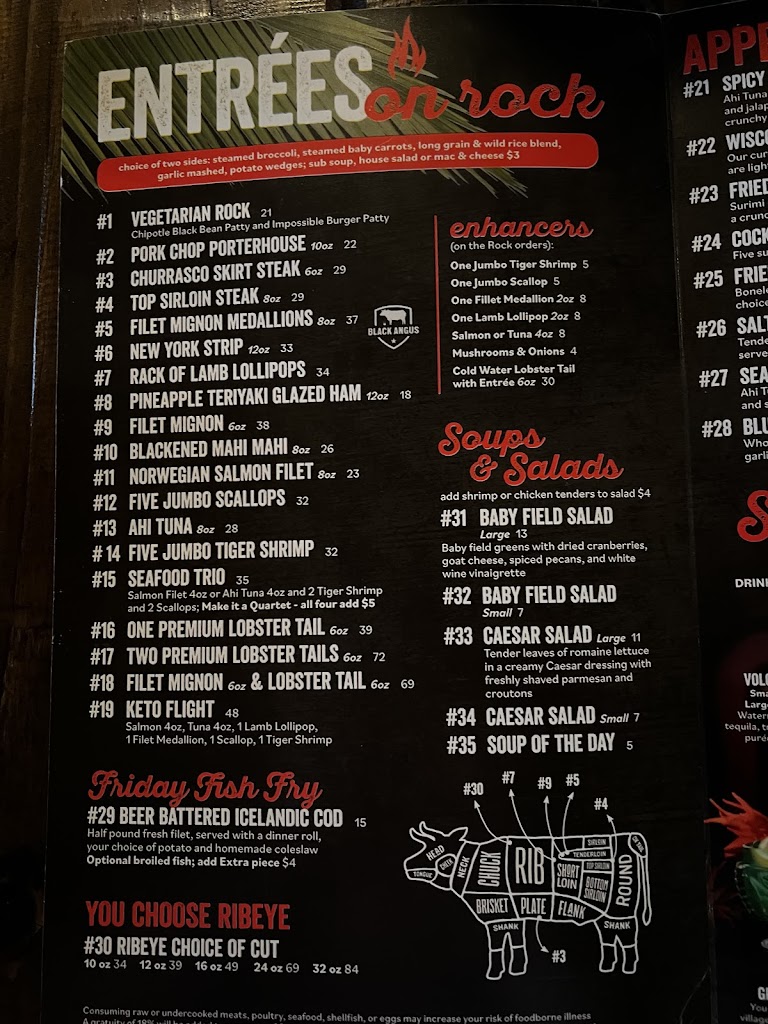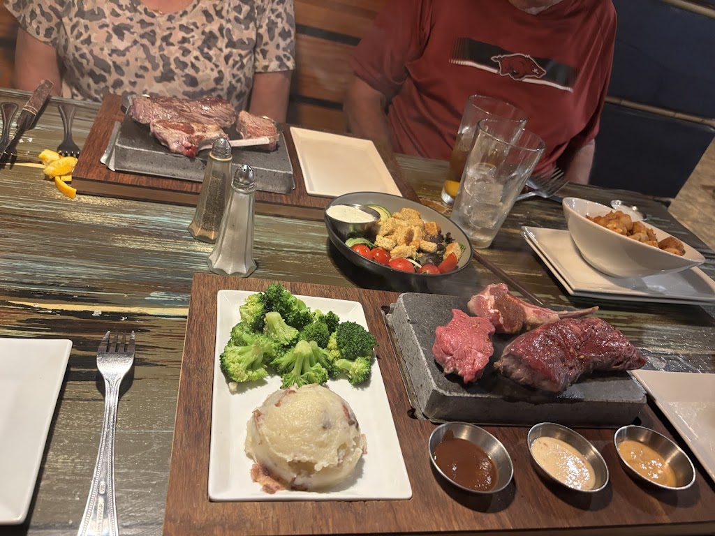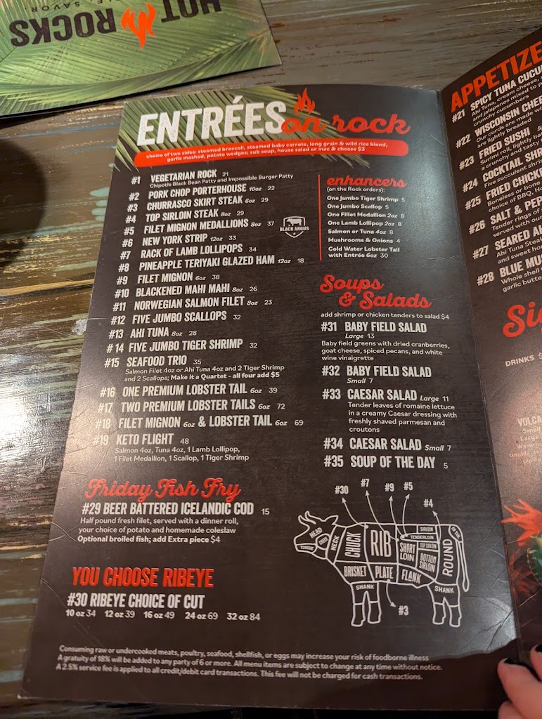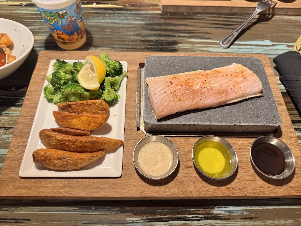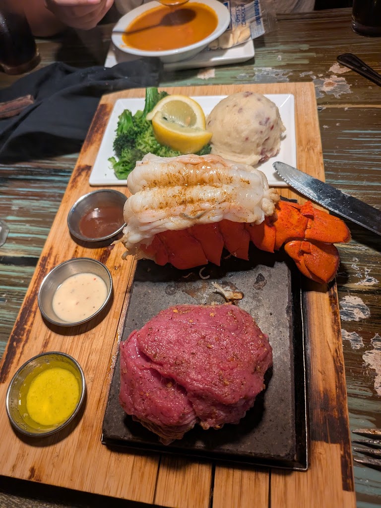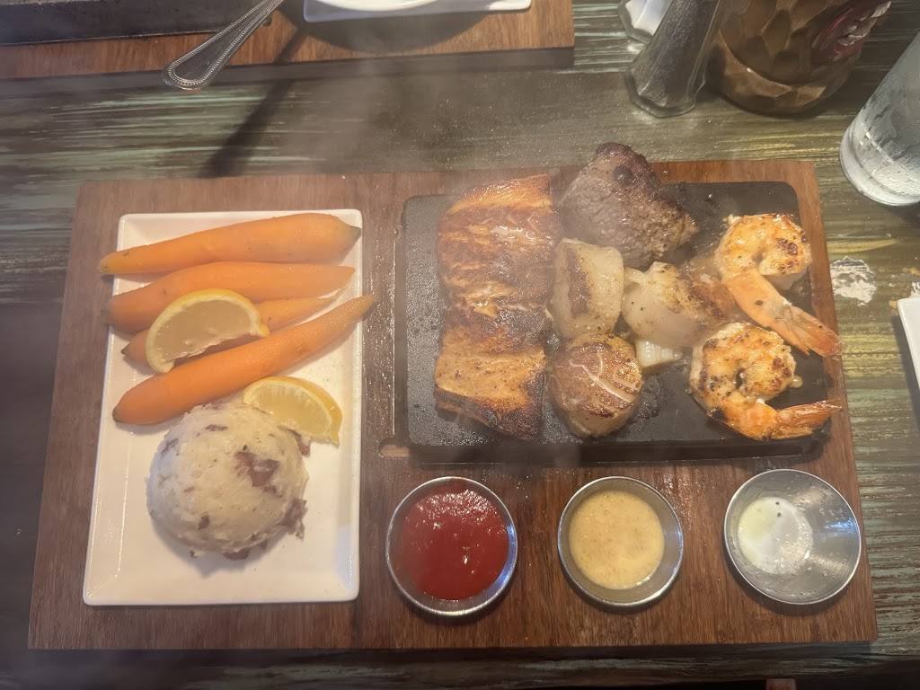 The steak on the rock tasted SOOOOO good, I really like how the place is designed and the food is overall really good. I definitely recommend going here.