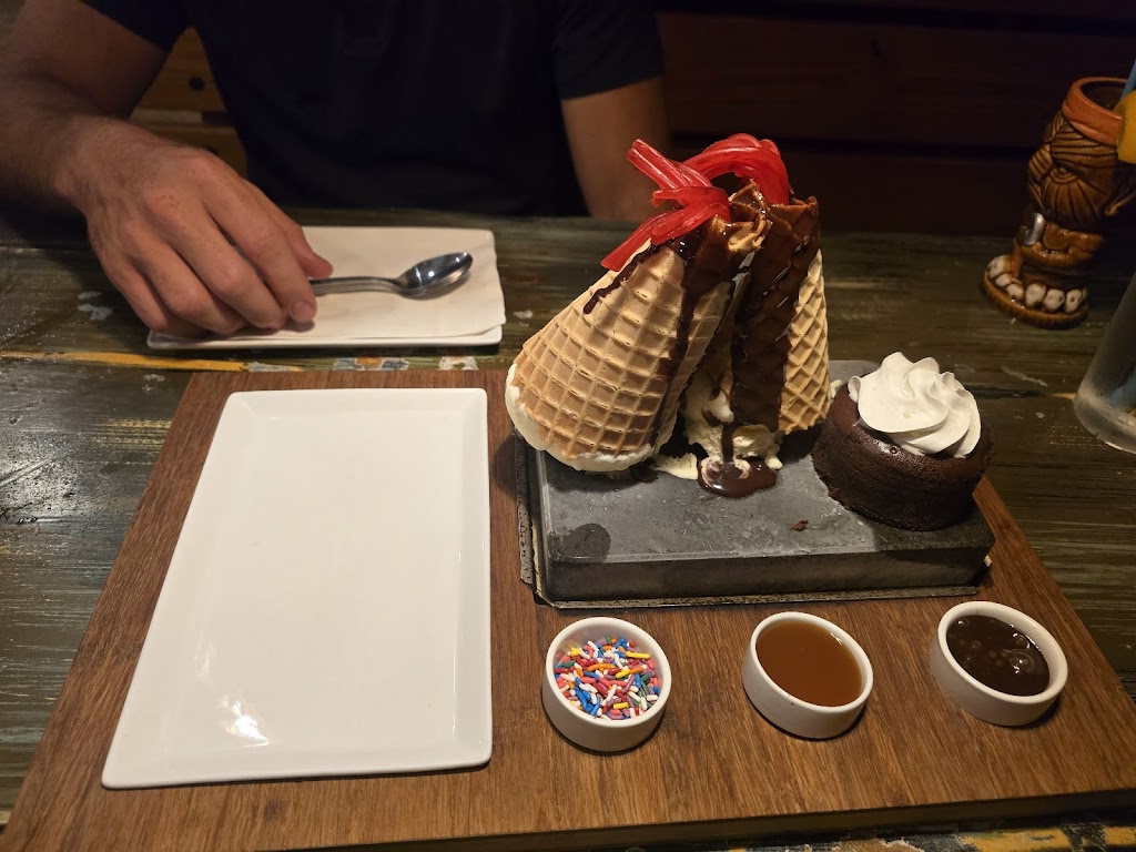 You’re at the Dells, so you can only expect so much. Drinks were blah. Food was a fun experience for the kids, but nothing amazing, the service lacked experience and attention to detail. It was loud. Would probably not go back.