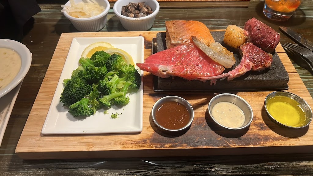 The interactive dining experience, featuring the opportunity to personally cook steak on a hot rock, proved to be an enjoyable and unique offering. The menu presented a diverse selection, complemented by very quick service.