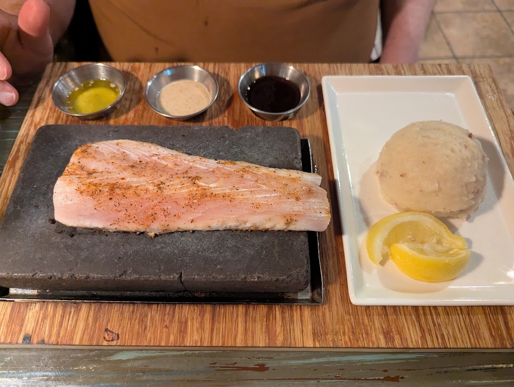 We loved the experience of cooking our own steaks on a 750° stone and man, It was such a cool experience! Totally suggest trying it out!! And hopefully you get our wonderful server!!