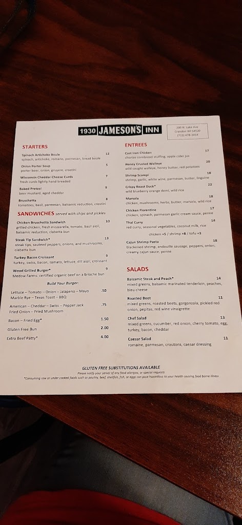 4 stars for the atmosphere only because the name 1930 suggested to us that the interior would be reflective of that history of Crandon. But dont let the plain interior fool you. Everything else is great! We will be recommending this to our lakehouse guests and plan to be back ourselves!