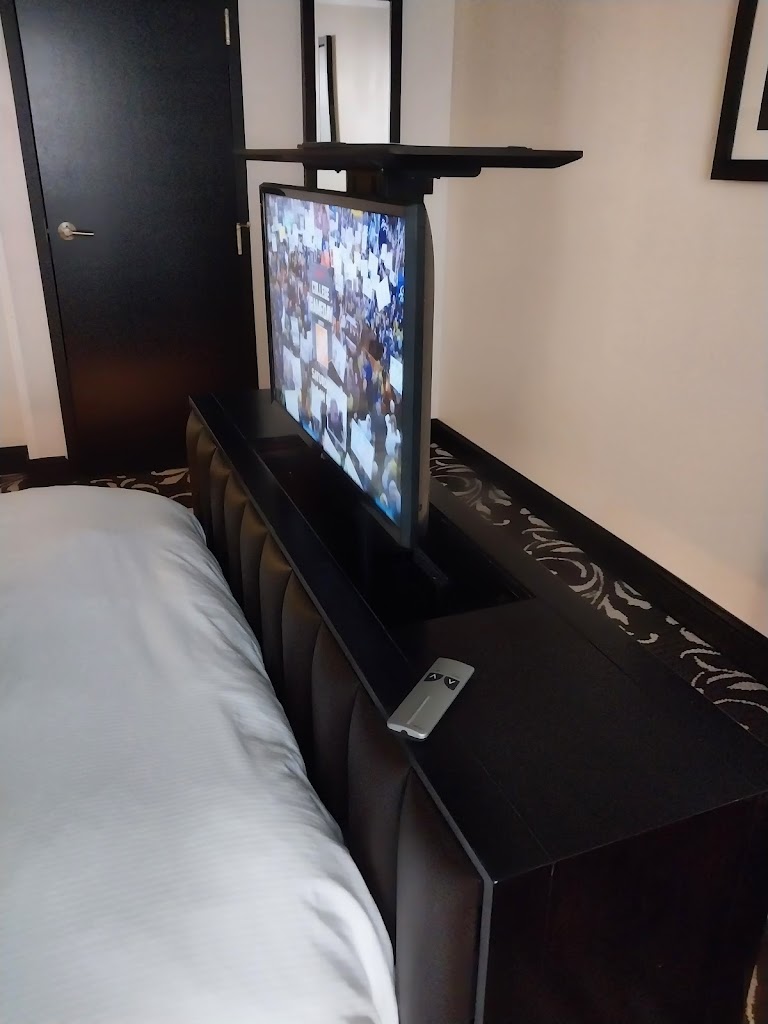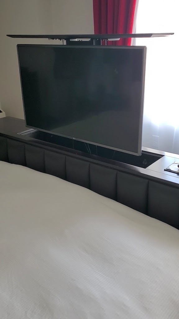 • The TV coming out of the foot of the bed is a cute novelty, but it’s not very practical, as this means the only way to watch TV is if you’re lying in bed. The TV is not visible from the couch. Again, this could be an awkward situation if you’re traveling with someone other than your significant other.