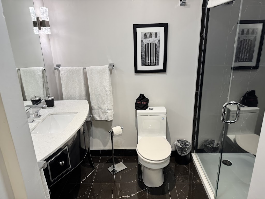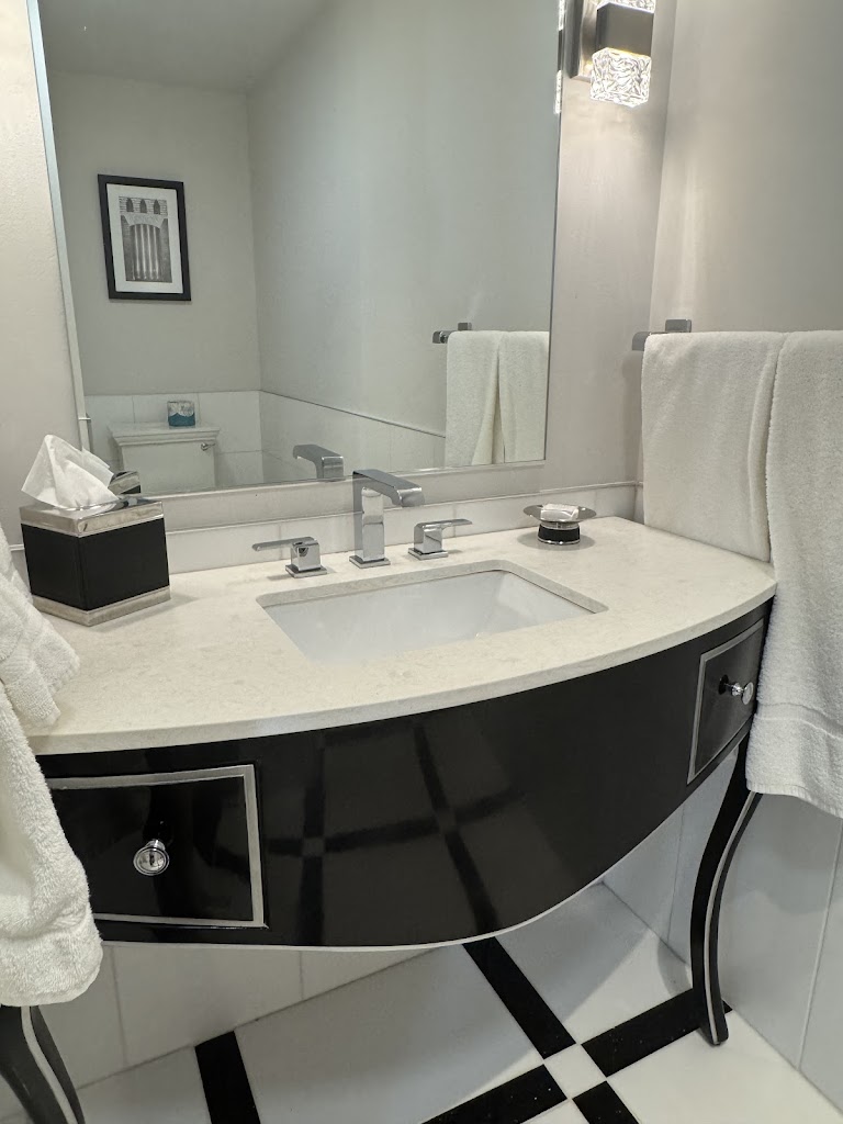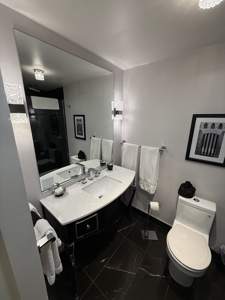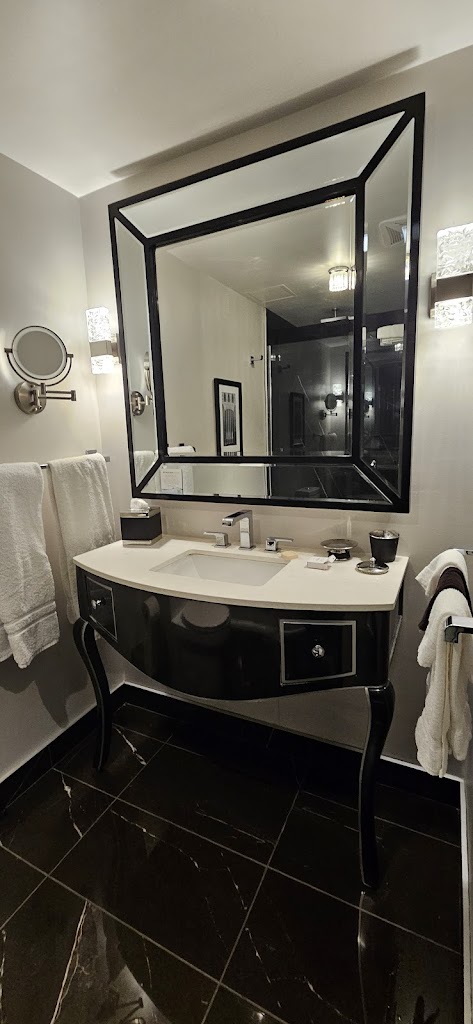I’m a Fondy local but often stay at the Retlaw. The renovations throughout are truly breathtaking, especially the lobby. The guest rooms each have different shapes due to the architectural structure of the building. All guest rooms have black, ivory and red color palette with high end furnishings and a marble bathroom floor.