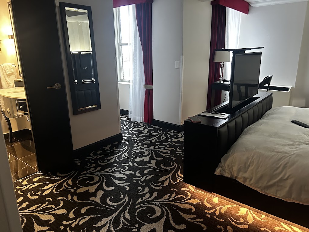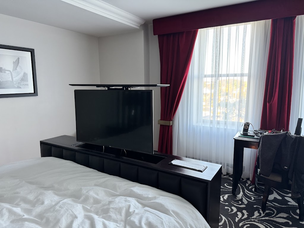 This hotel has an interesting history which the staff will be glad to share with you about. They clearly take pride in the property and go above and beyond to not only answer your questions but offer additional information and assistance. Truly excellent service.||The room was lovely also - spacious and stylish, with an amenity I've actually not seen elsewhere - a TV that's nested in the bed frame and slides up and down using a remote! Perfect for watching TV in bed, and you don't have to be staring at the blank TV screen the rest of the time. Bathrooms have hot water, great pressure, and fancy toiletries. They were clean and recently renovated.||I was only here for one night but would be happy to get a chance to come back!