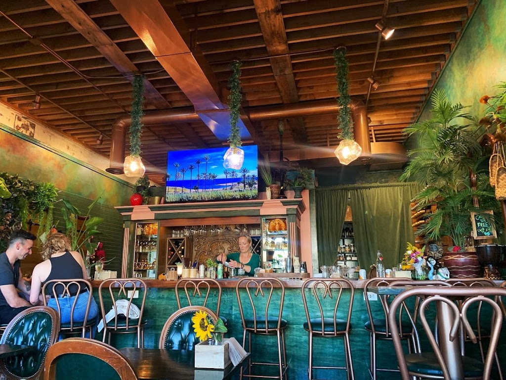 FABULOUS HIDDEN GEM 🌿 of a Locale: vibrant plant vibe 🪴 COMFORTABLE Emerald Chairs🪘 tiki-feel bar🍸FRESH Drinks and Food 🌴 FABULOUS Personal Service --> All AMAZING: FRESH x 1000, DELICIOUS, EVERYTHING we ordered HITS, not one thing a miss!!