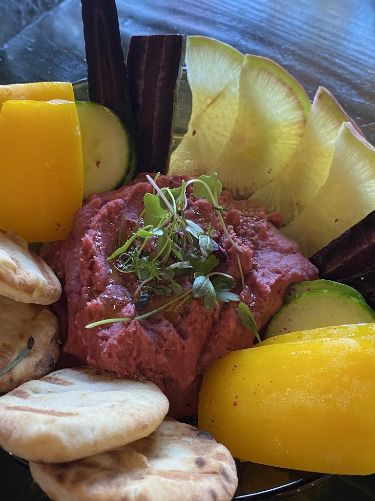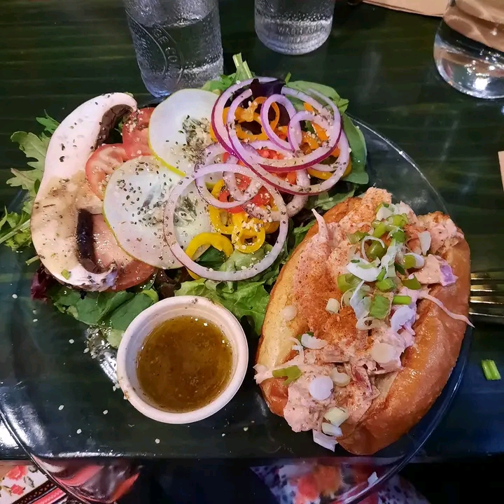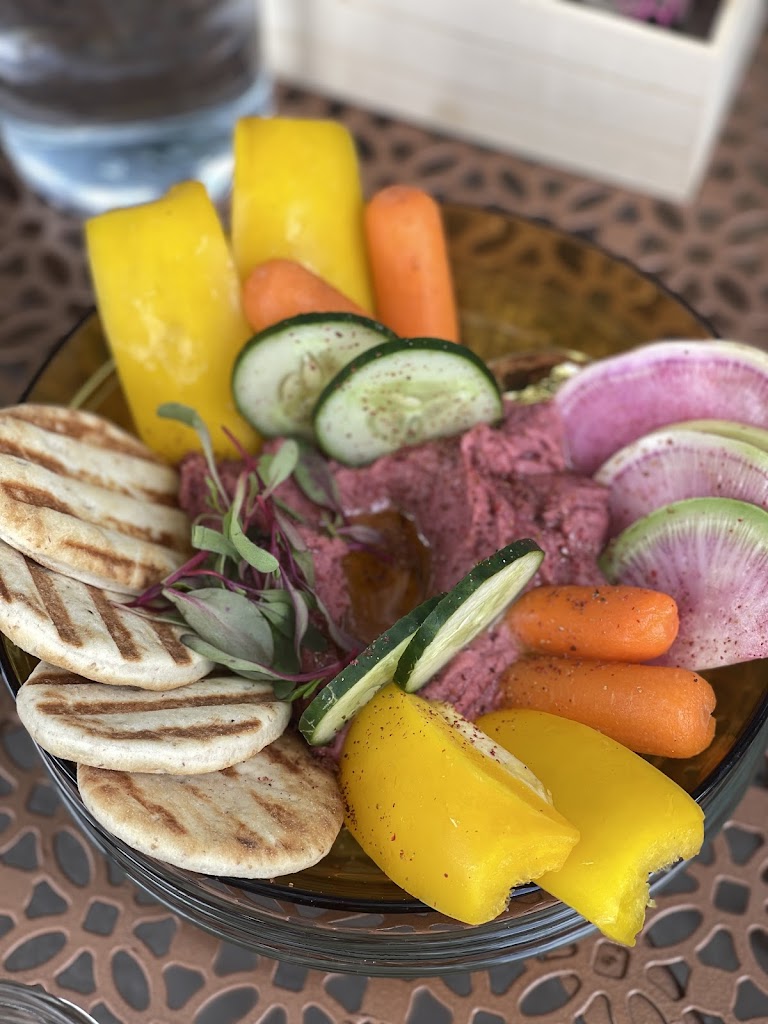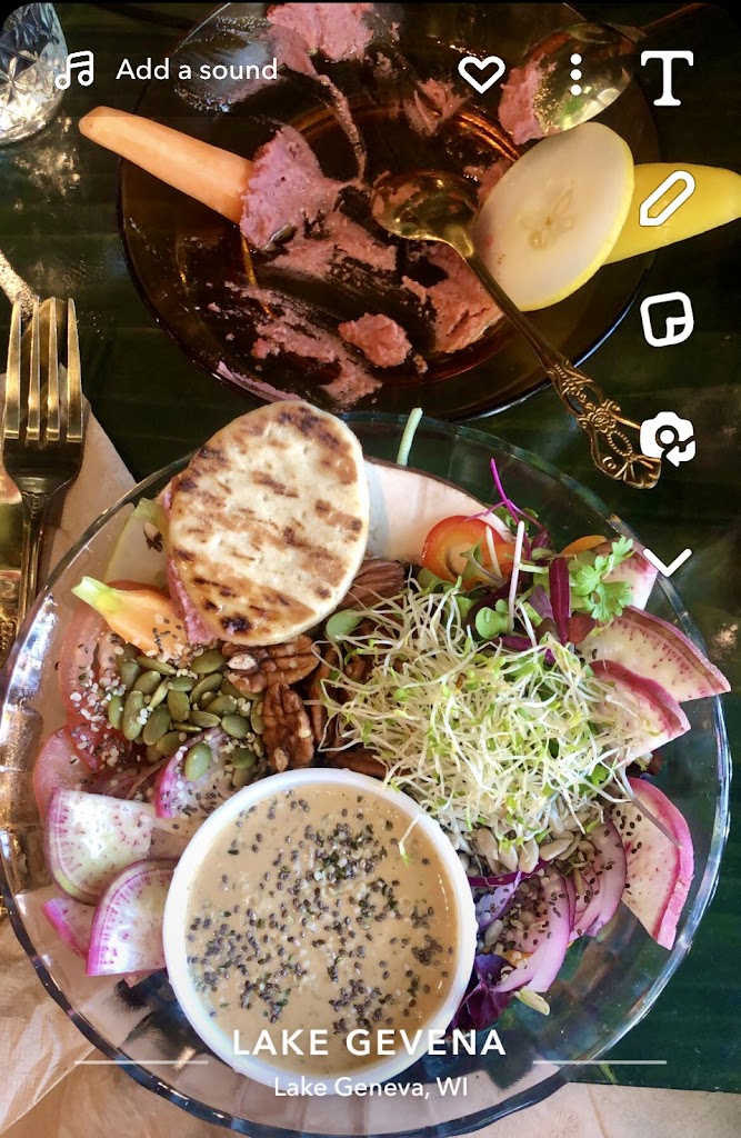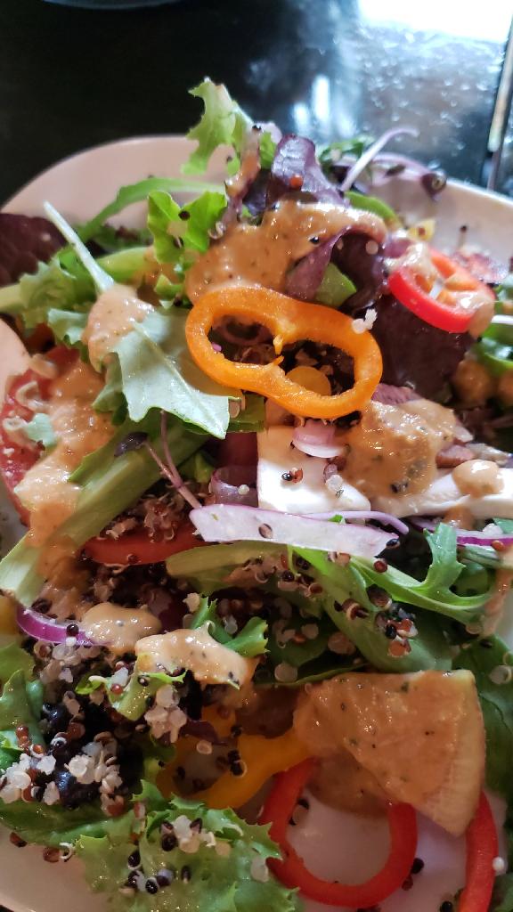 Delicious salads, hummus and other menu items with fresh vegetables. Very welcoming atmosphere, friendly service. Great location in downtown Lake Geneva.