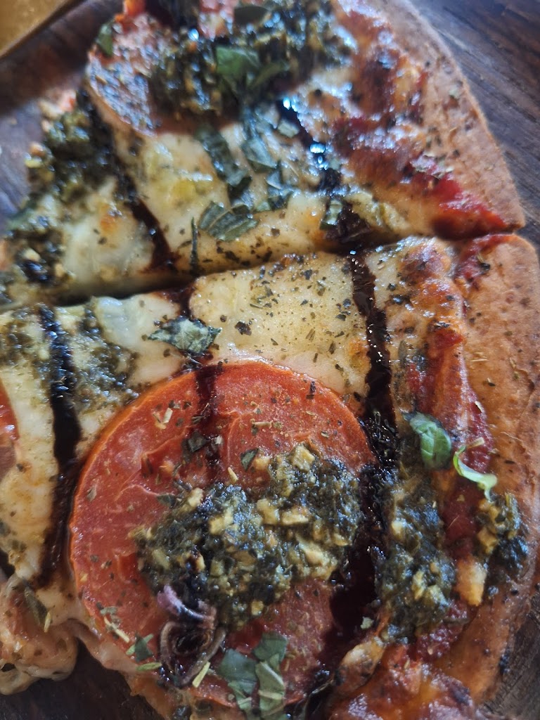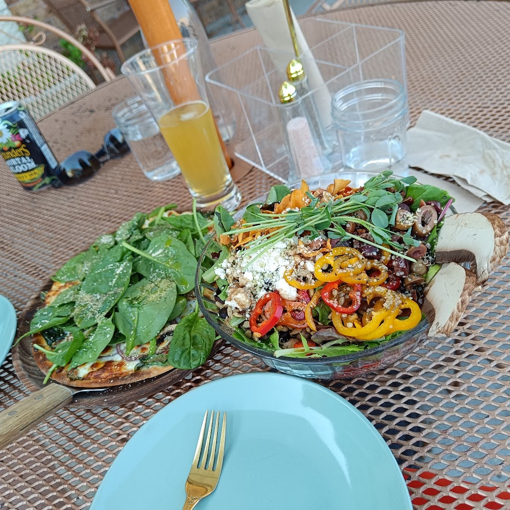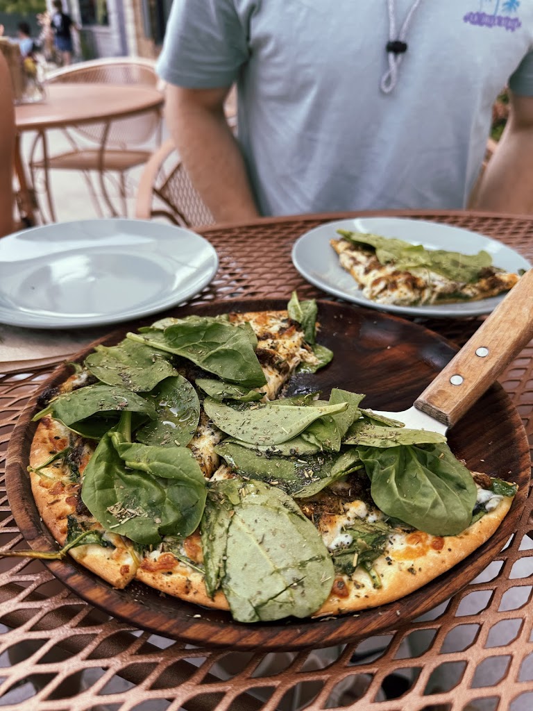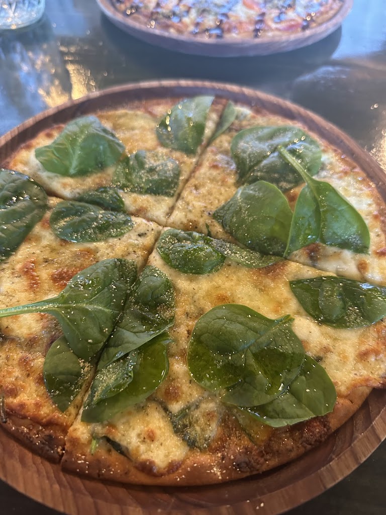 The white garlic olive oil pizza was absolutely delicious — the flavor was spot on and the crust had the perfect crunch! I do think it would’ve been even better with a little less spinach on top, but overall, it hit the mark. Salads were fresh and well-balanced, and the drink options were surprisingly great — creative and refreshing.