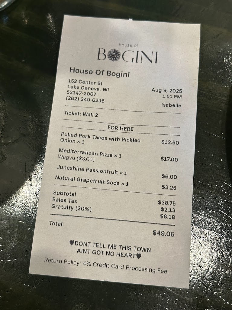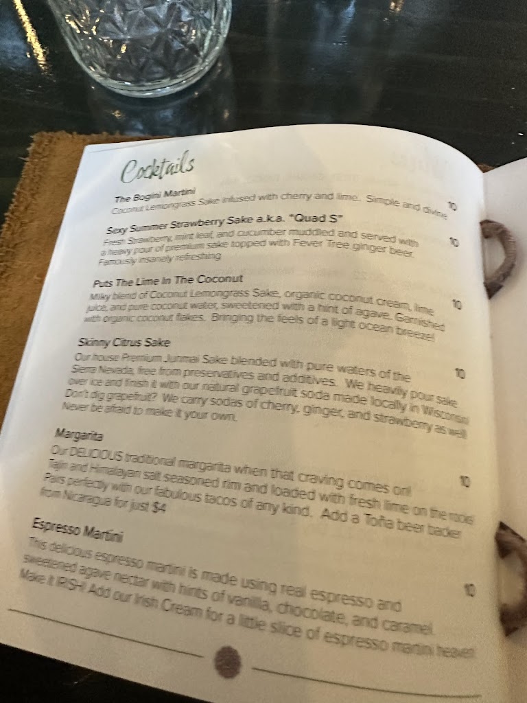I’d love to see this place grow in size as it is small and I feel like people may pass it up if they think it’s too crowded. We also guessed how much our bill would be before it came and we were both off by about $30- way more affordable than some of the other meals we’ve had staying in Lake Geneva. Will definitely be returning next time we’re in town!
