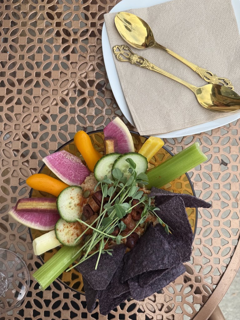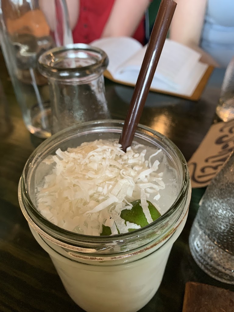 Beautiful little restaurant! It’s so pretty and unique inside, and our server was great. We got the Bogoni Martini and Puts the Lime in the Coconut for drinks, and the olive hummus for a snack. They were all gorgeous and delicious!