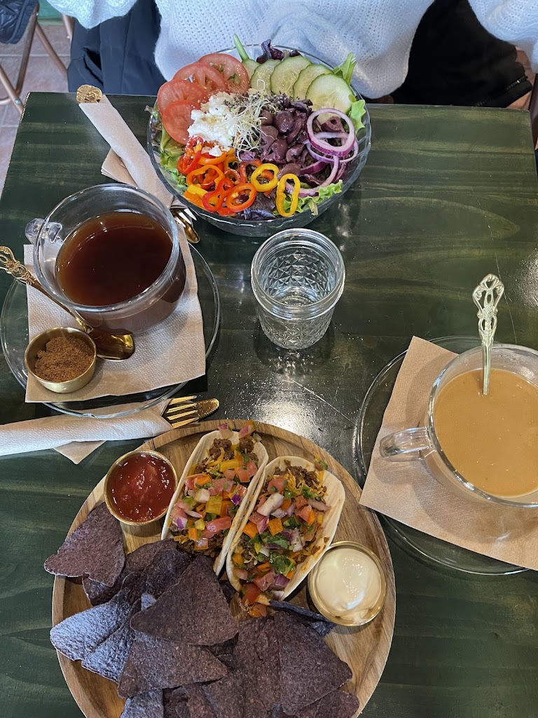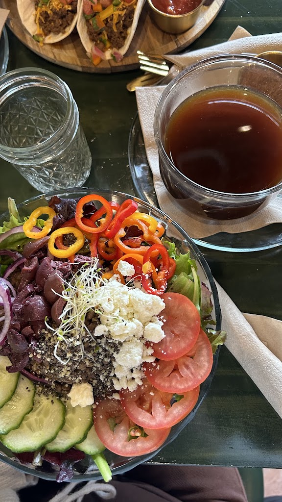 I had an excellent dining experience at this restaurant. The food was not only delectable but also reasonably priced. The menu offered a wide array of healthy options, all of which sounded tempting. I opted for the Mediterranean Salad and the Street Tacos. As an avid coffee enthusiast, I was pleasantly surprised by their extensive variety of coffees — a rare find in restaurants. The ambiance was charming and welcoming, creating a cozy and intimate setting. While the space was somewhat compact, it added to the restaurant's quaint charm. Without a doubt, I would eagerly return for another visit.