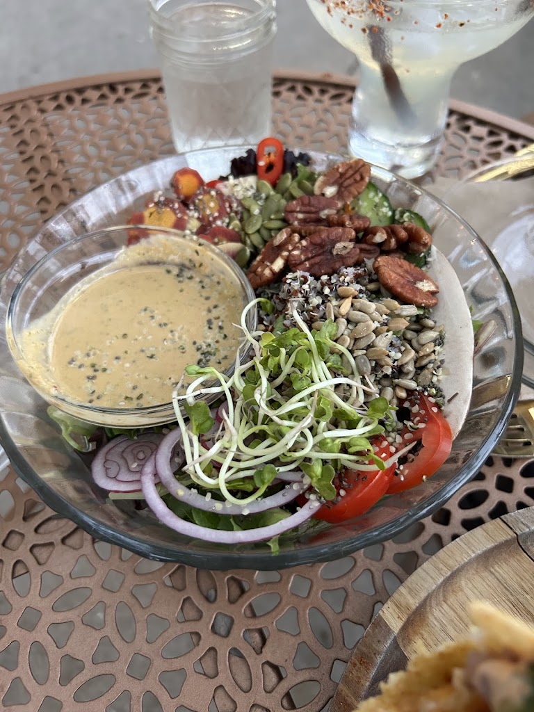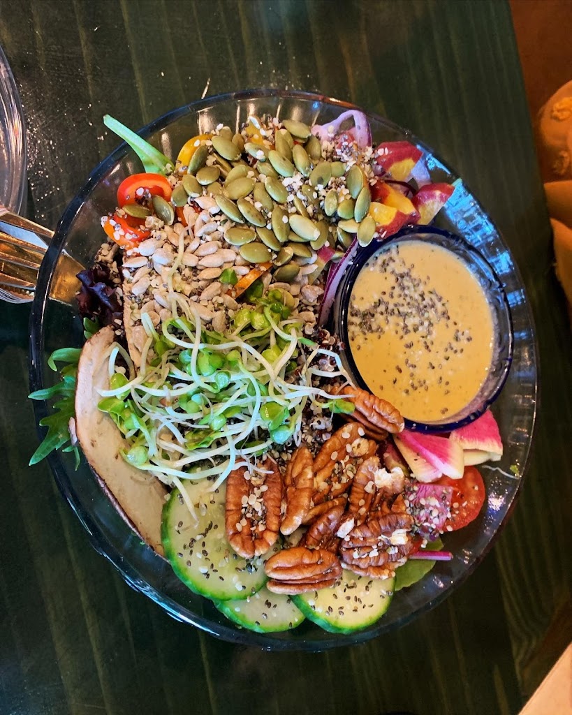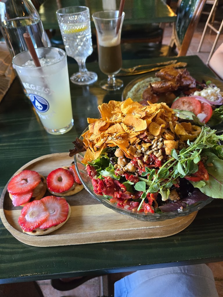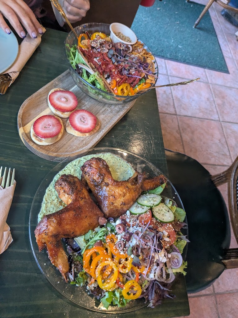 I got the “hangover salad” with the naan strawberry and tahini butter bites on the side and the whole meal was fabulous!!