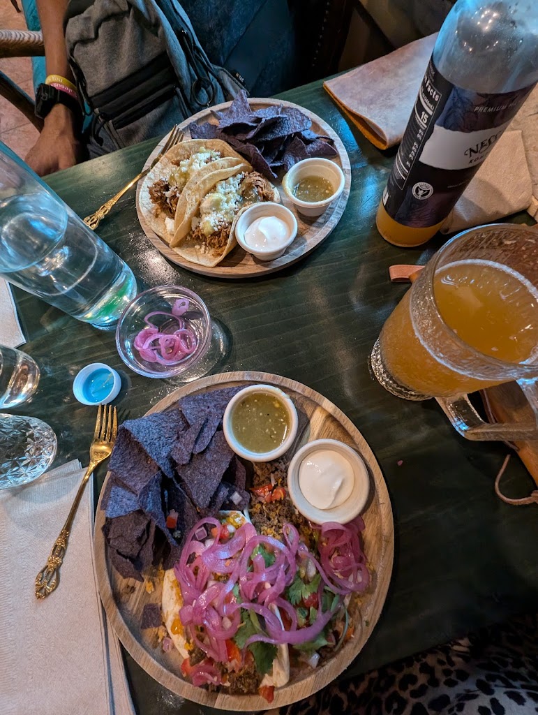 The tamales were good, but the chips and salsa it came with tasted like store-bought products. The salad ingredients were super fresh, which we appreciated, but the dressing was too salty and not much other flavor, so it was hard to enjoy.