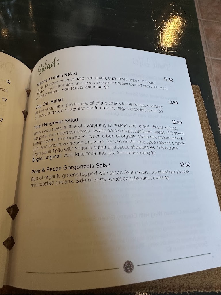 Not only is the place beautiful but the food tastes as good as it looks and sounds! A refreshing change to typical options in the area. Prices were reasonable and will be our go to when we are in the area.