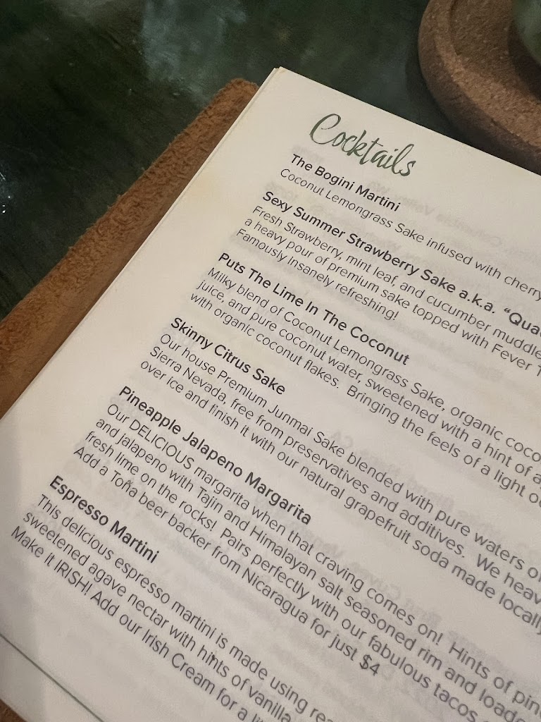 Super unique and wonderful drink and food menu. High quality and organic ingredients.