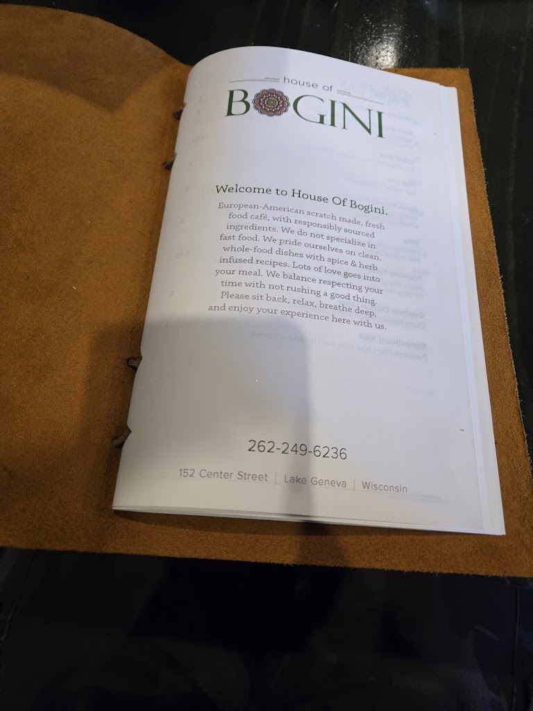 I had the fish tacos and they were fantastic as well. Everything was so fresh and beautiful. If you are looking for something inspiring (not bar food) near Lake Geneva, House of Bogini won't disappoint.