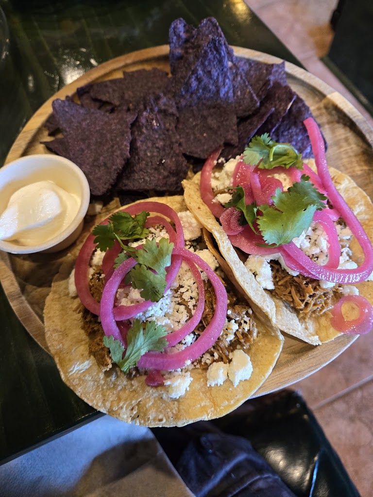 2 small tacos and a hand full of chips with store bought salsa and chips for $15. It wasn’t even good store bought salsa, tasted like Pace brand. Their Facebook says they offer scratch made foods from European ingredients. Im happy to pay for an expensive high end meal if it’s delicious and you can taste how fresh it is. If you are going to overcharge, and not fulfill your own description, at least give me enough so I don’t need to supplement the meal. Such a waste of money.