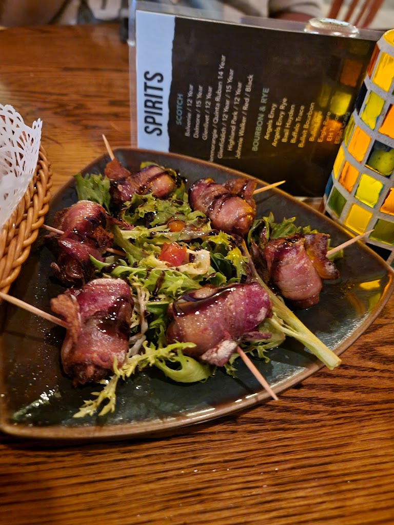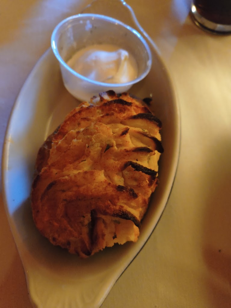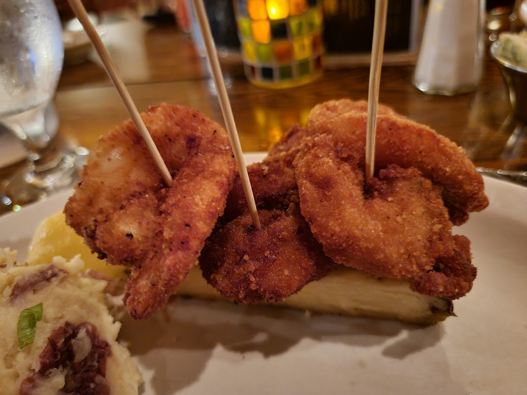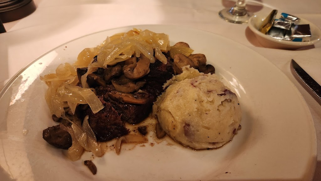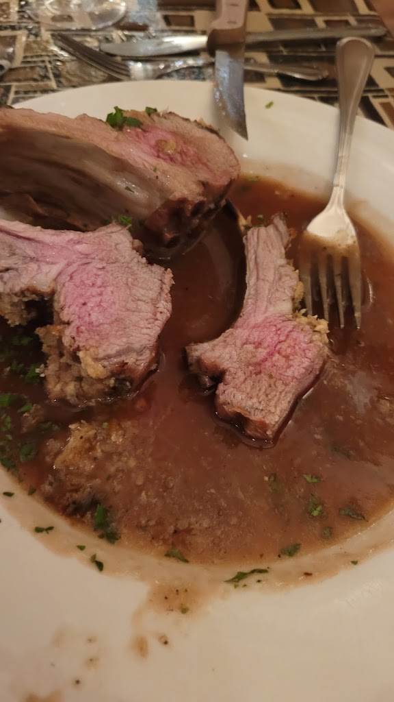 I was given a bit of a hassle about my service dog. After that, it was quite nice. I had one of the best ribeye steaks. My friend has prime rib and another had lobster tail and they were wonderful. Hard the waitress to get us things like bread and butter and hot sauce. The bacon wrapped dates were outstanding as was the salad it was served on. I asked the server to ask what kind of dressing they used and never got an answer. The oysters Rockefeller were iffy. The one I had was terrible and I gave the other half of it to one of my friends. She agreed but said hers was good. The pumpkin pie slice was tiny.