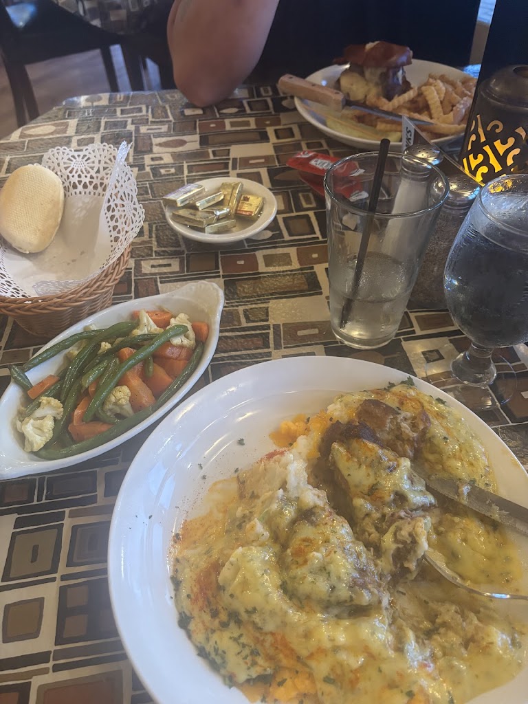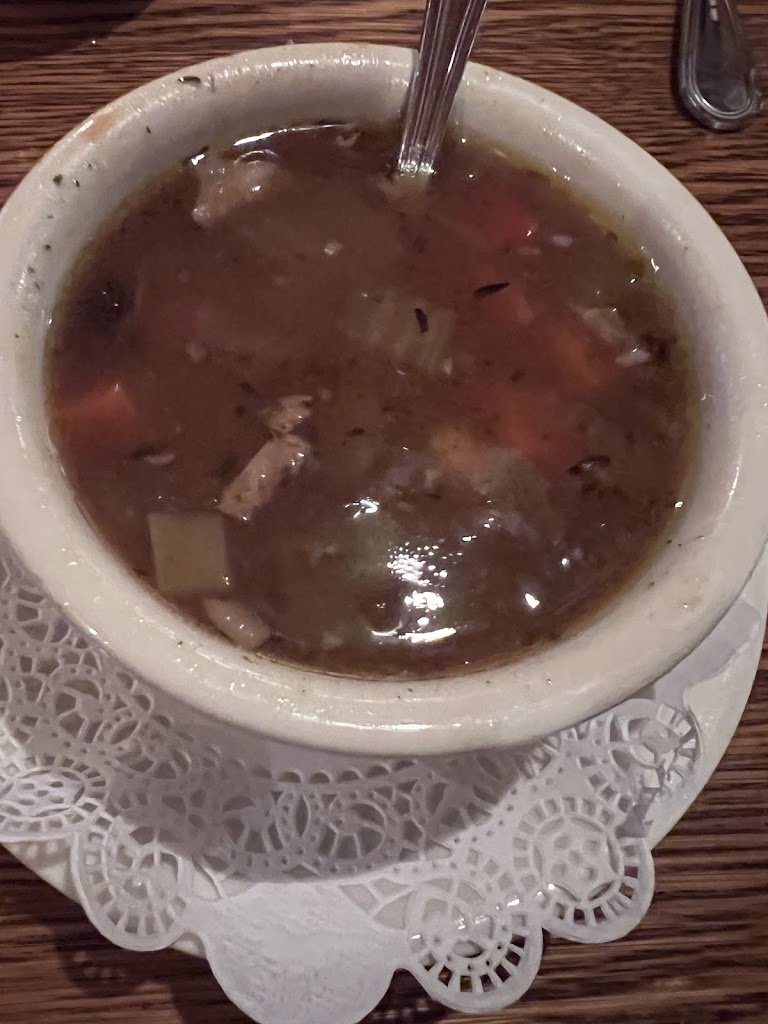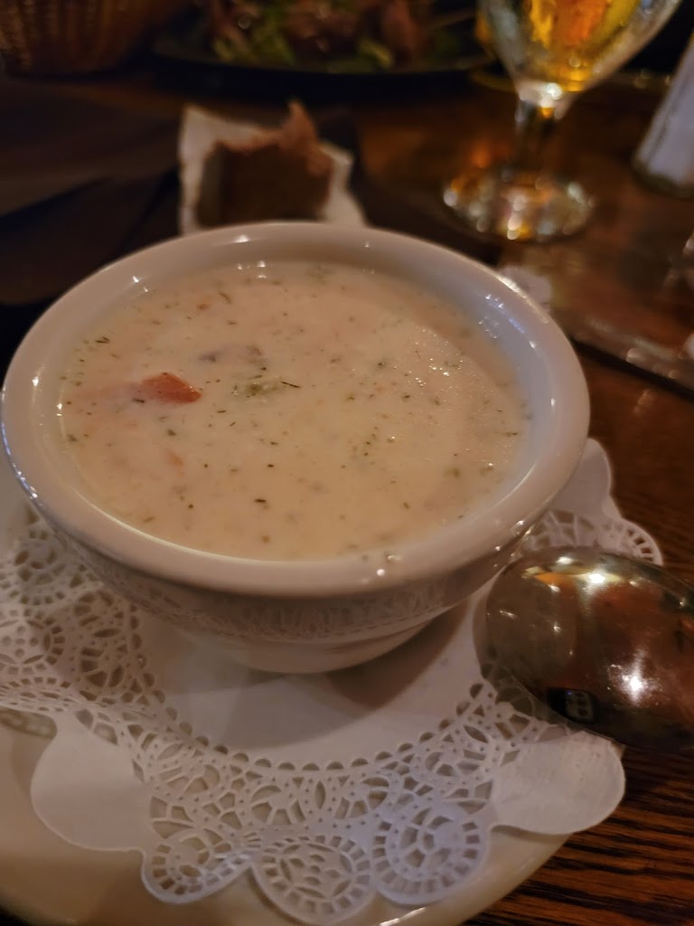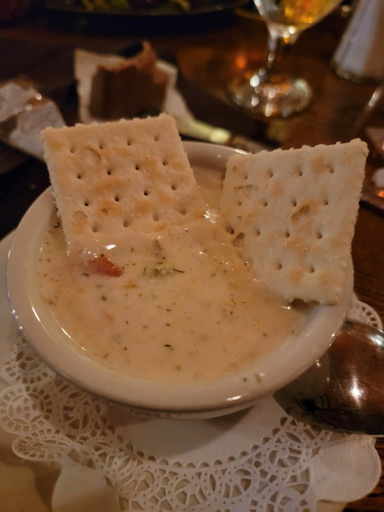 I was given a bit of a hassle about my service dog. After that, it was quite nice. I had one of the best ribeye steaks. My friend has prime rib and another had lobster tail and they were wonderful. Hard the waitress to get us things like bread and butter and hot sauce. The bacon wrapped dates were outstanding as was the salad it was served on. I asked the server to ask what kind of dressing they used and never got an answer. The oysters Rockefeller were iffy. The one I had was terrible and I gave the other half of it to one of my friends. She agreed but said hers was good. The pumpkin pie slice was tiny.