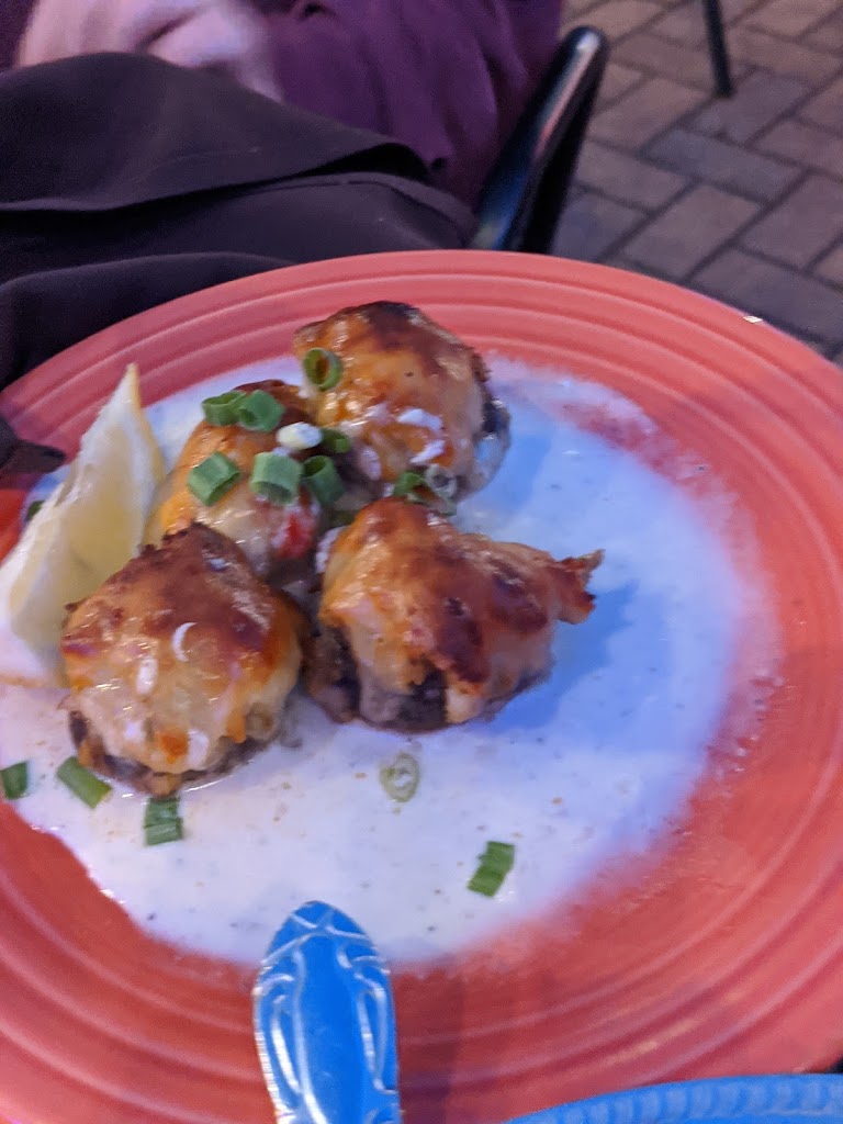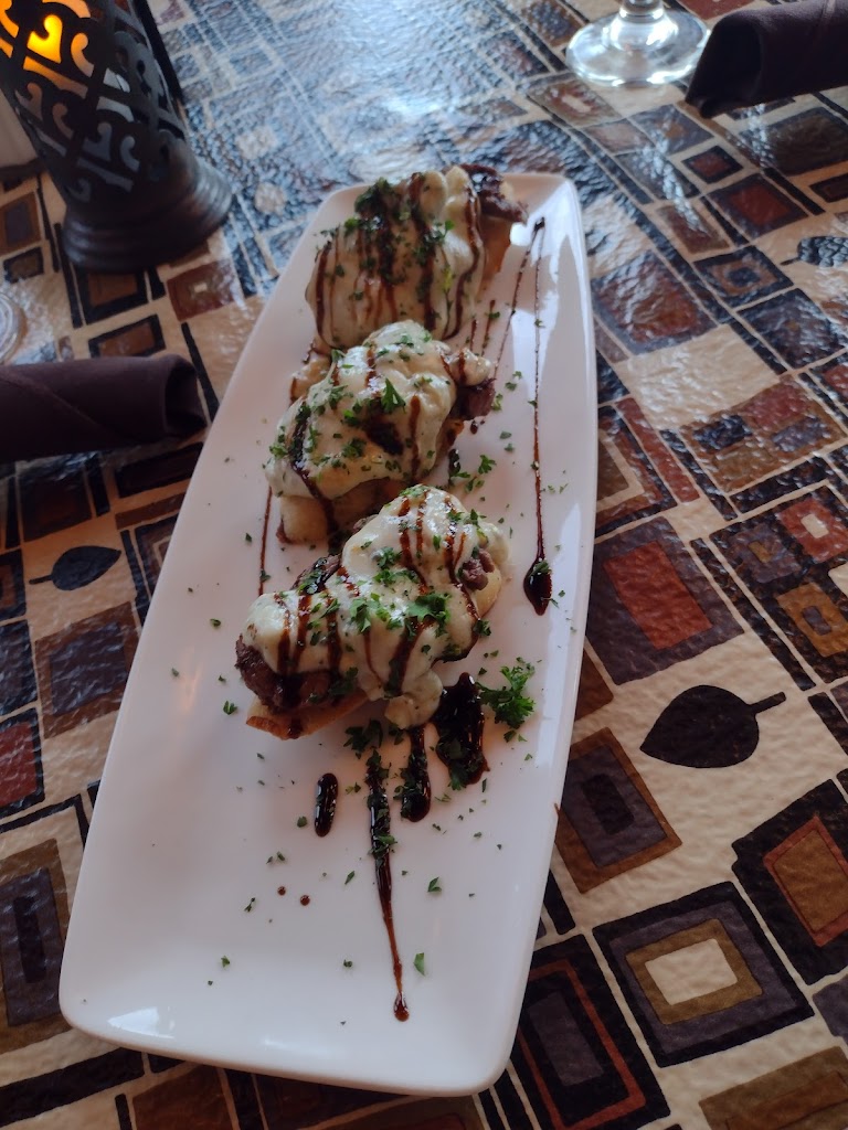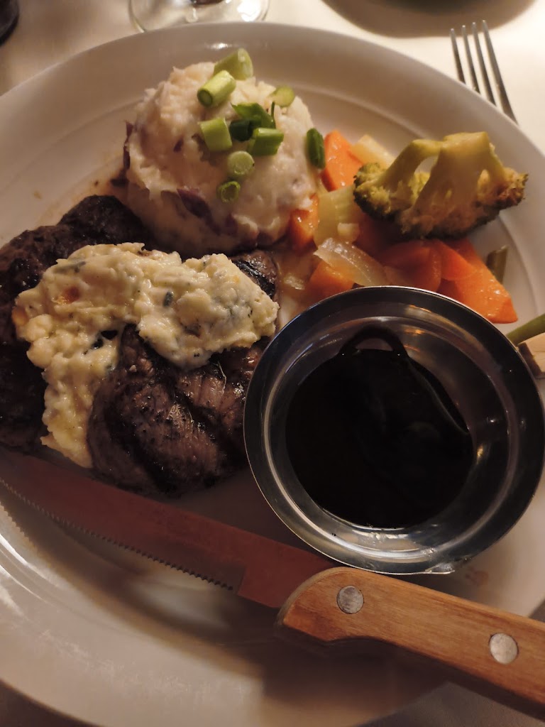 We had stuffed mushrooms and sirloin medallions with a caramelized blue cheese for appetizers they were fabulous.