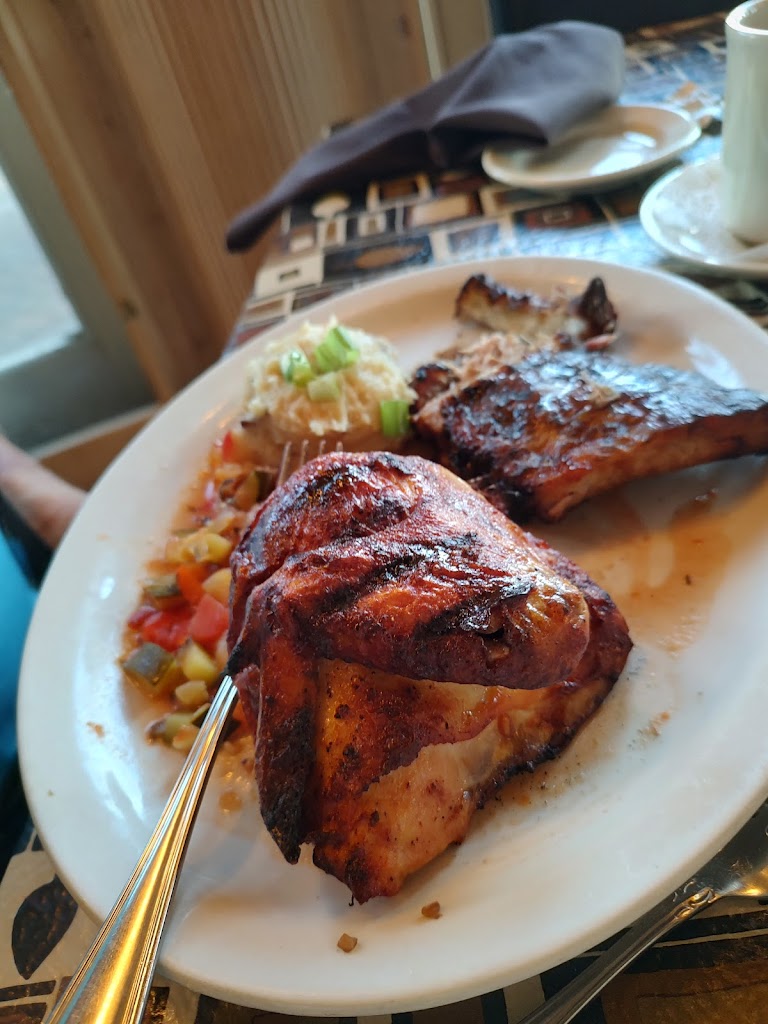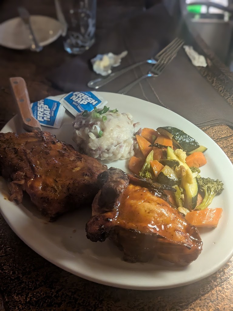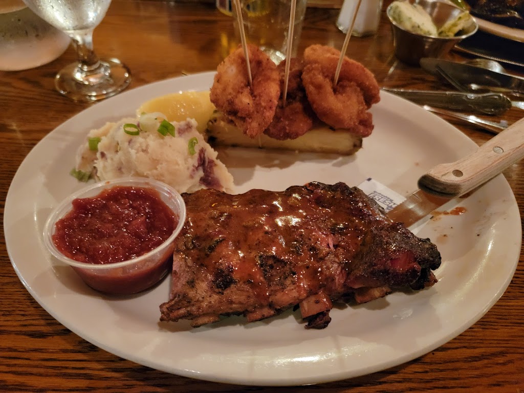 Some of the best ribs I've ever had. So tender I didn't need the knife. My wife really enjoyed the salmon, and they have a good variety of mixed drinks.
